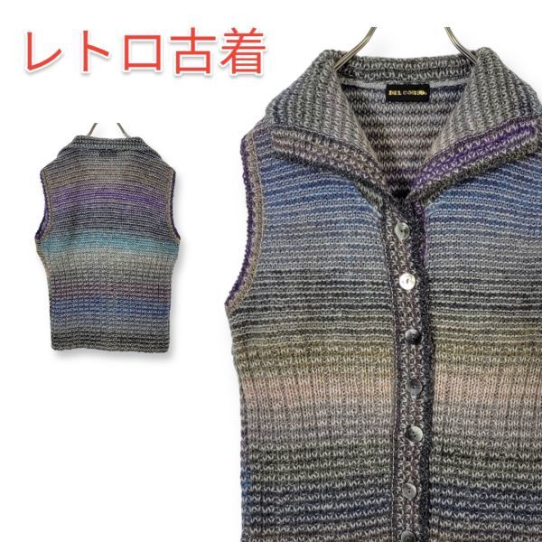 デルコルソ DEL CORSO 日本製 ベスト カーディガン モヘア シルク ウール レディース Mサイズ マルチカラー