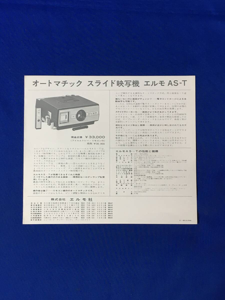 レB777ア●【チラシ】 「ELMO エルモ AS-T」 オートマチックスライド映写機/価格/性能と機構/昭和レトロ