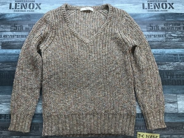ANOTHER EDITION アナザーエディション レディース Vネック ウール混ニットカットソー 茶MIX です。