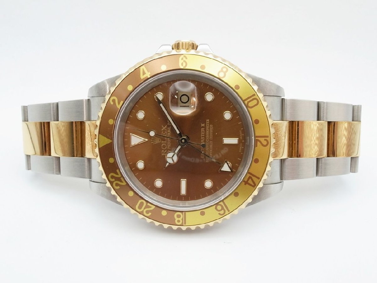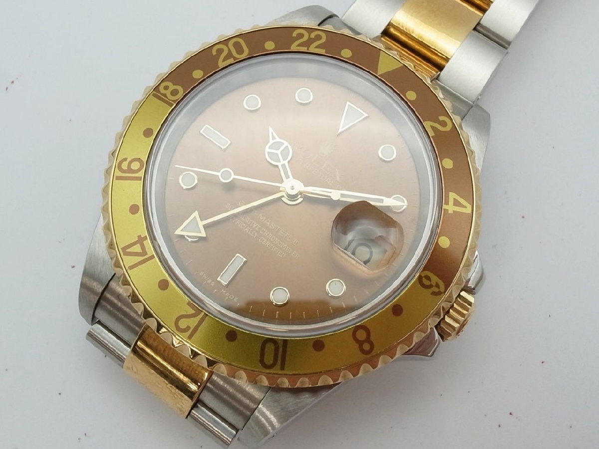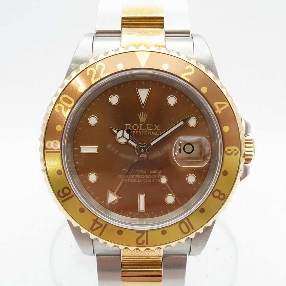 ■商品名 ロレックス GMTマスター2 ブラウン文字盤 ■型番 16713 A番 1999年製造■参考定価 ■ムーブメント 自動巻き ■素材 YG/SS■サイズ ケースサイズ40ミリ 腕周り19センチ ■付属品 箱・保証書(2000年10月購入品)■程度 AAランク・美品■その他 日本ロレックス修理保証書(2019年7月)