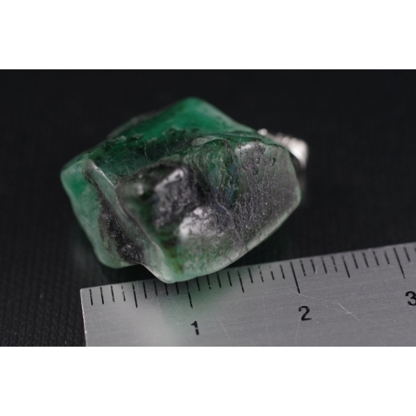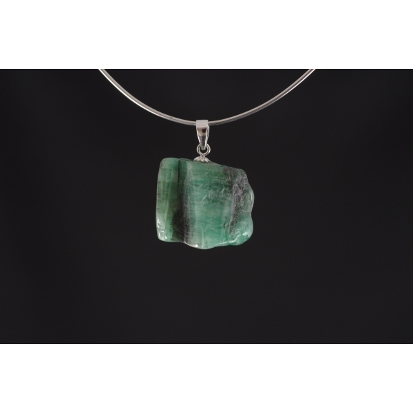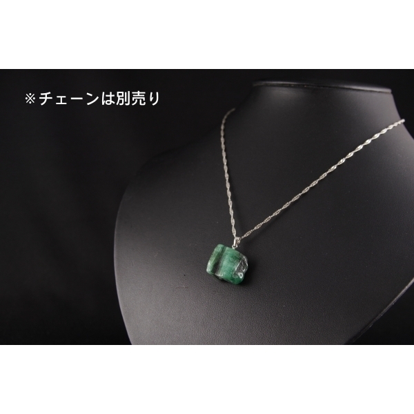 エメラルド原石結晶をそのまま磨いた形のペンダントトップで、柱状結晶の名残も見られます。
