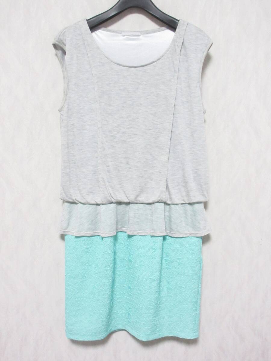 OPAQUE.CLIP オぺークドットクリップ ワンピース ノースリーブ 夏 40 / L グレー グリーン yg5321