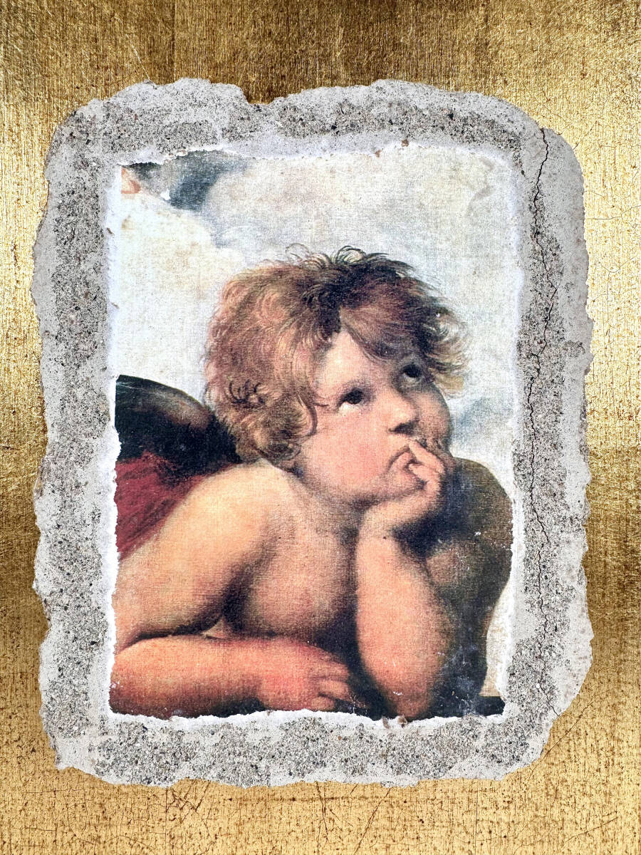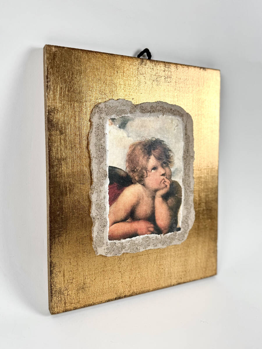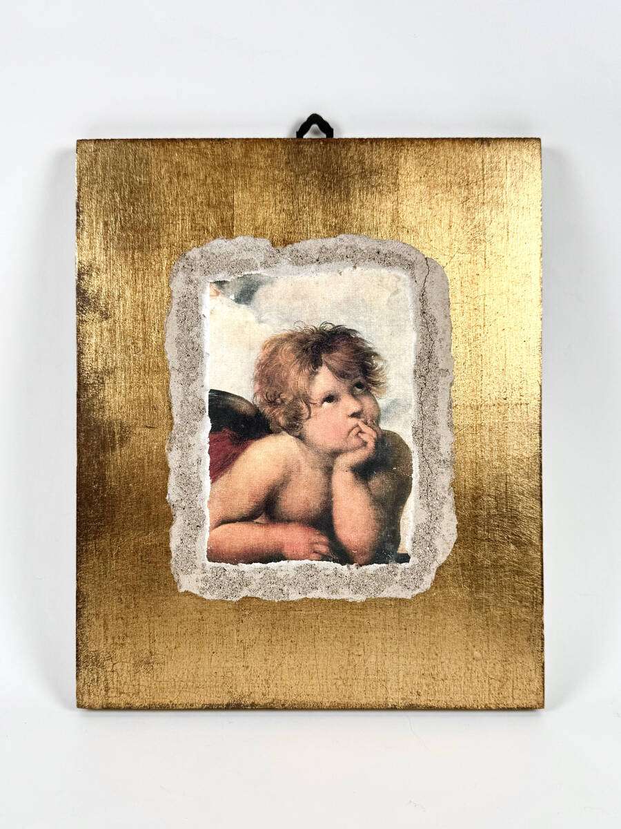 未使用★イタリア製 アートフレーム ラファエルロ・サンティ システィーナの聖母 エンジェル 天使 絵画 複製名画 世界の名画 ヴィンテージ