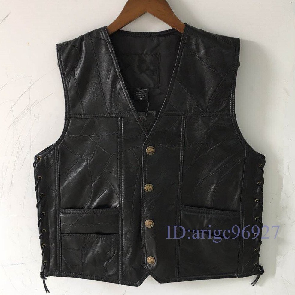 T053☆新品ベスト メンズ レザーベスト バイクベスト ライダース ベスト 革ジャン カジュアル チョッキ ジャケット タンクトップ L