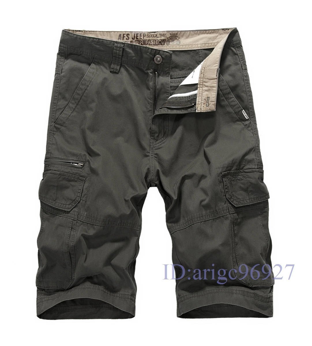 T633☆新品メンズショートパンツ綿ハーフパンツワークパンツ短パン軍パンストレッチパンツミリタリーパン大きいサイズグリーンW30~W44