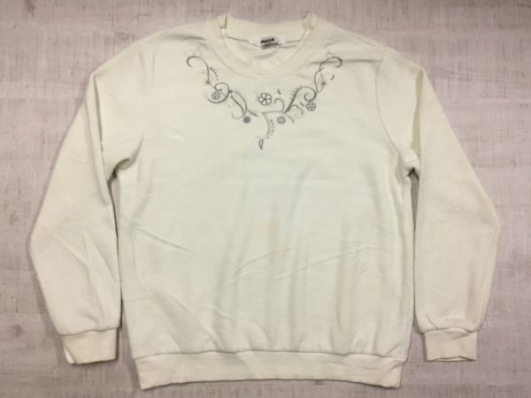 オールド レトロ アメカジ 90s 古着 アリア ALIA フリース トレーナー レディース 二重襟 花柄 刺繍 ポリエステル100% S オフホワイト