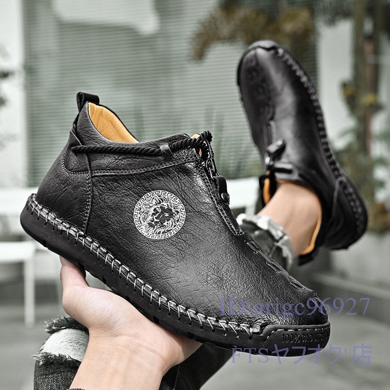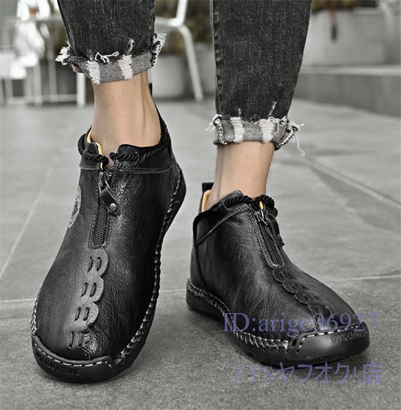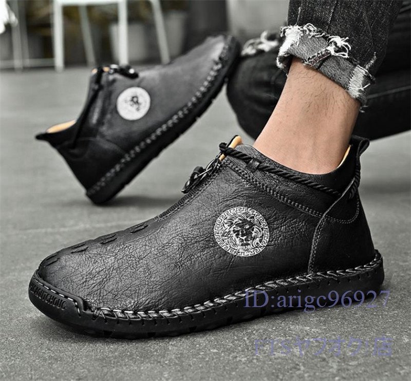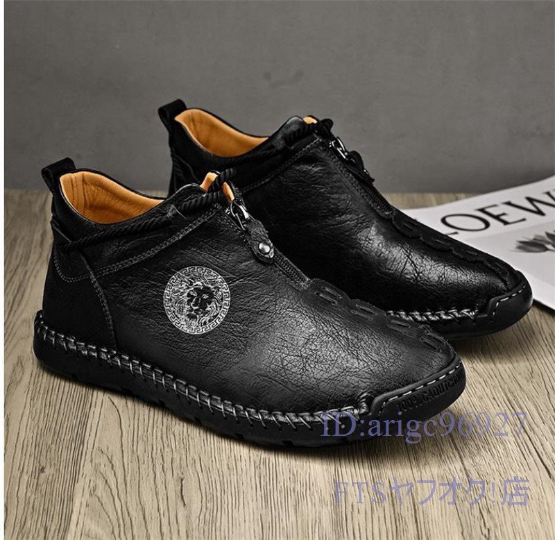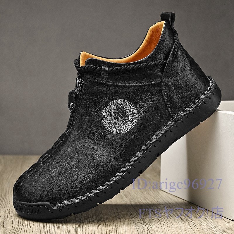 U013☆新品マーティンブーツ スリッポン スニーカー ドライビングシューズ ショートブーツ メンズ 春秋靴 カジュアル 黒 27.0cm
