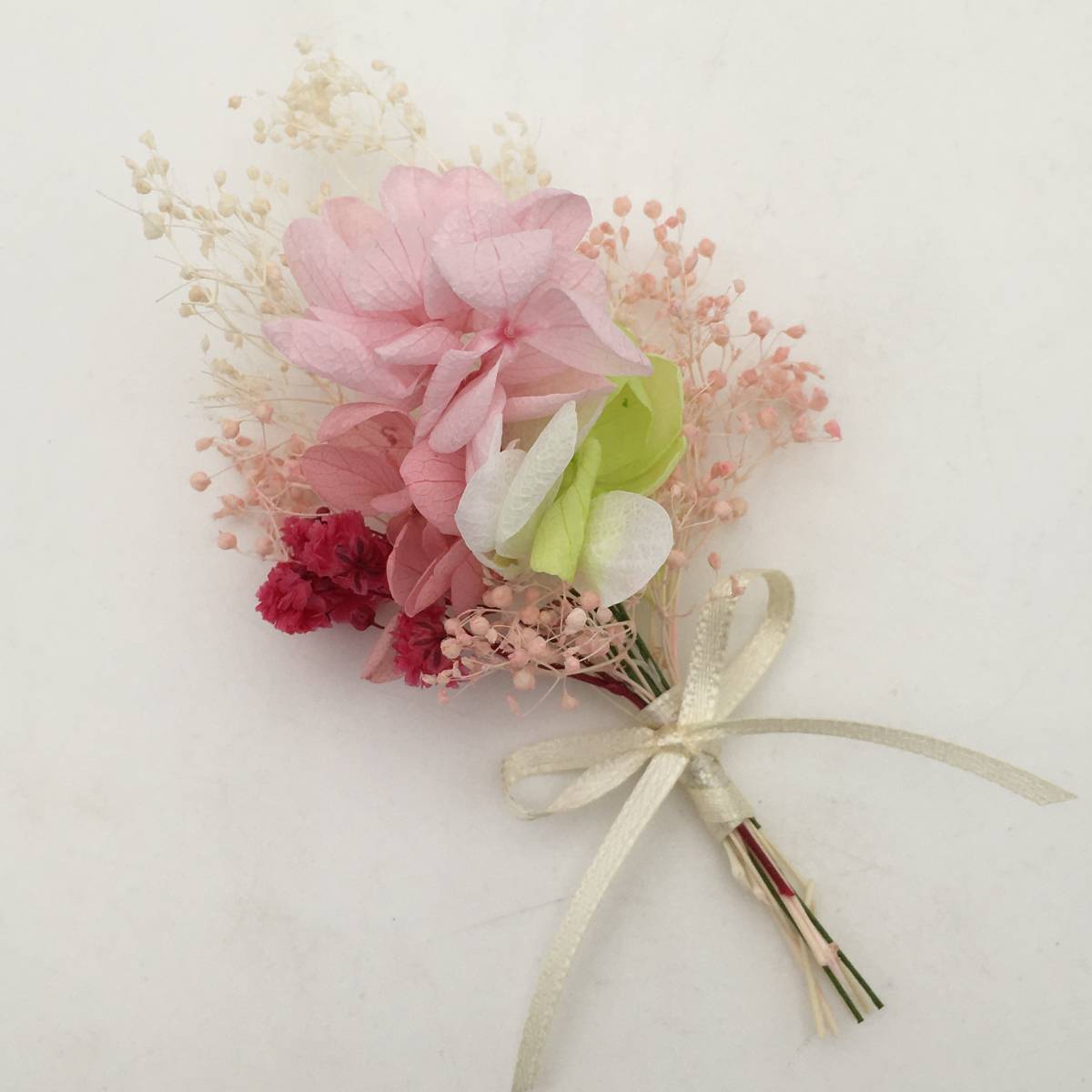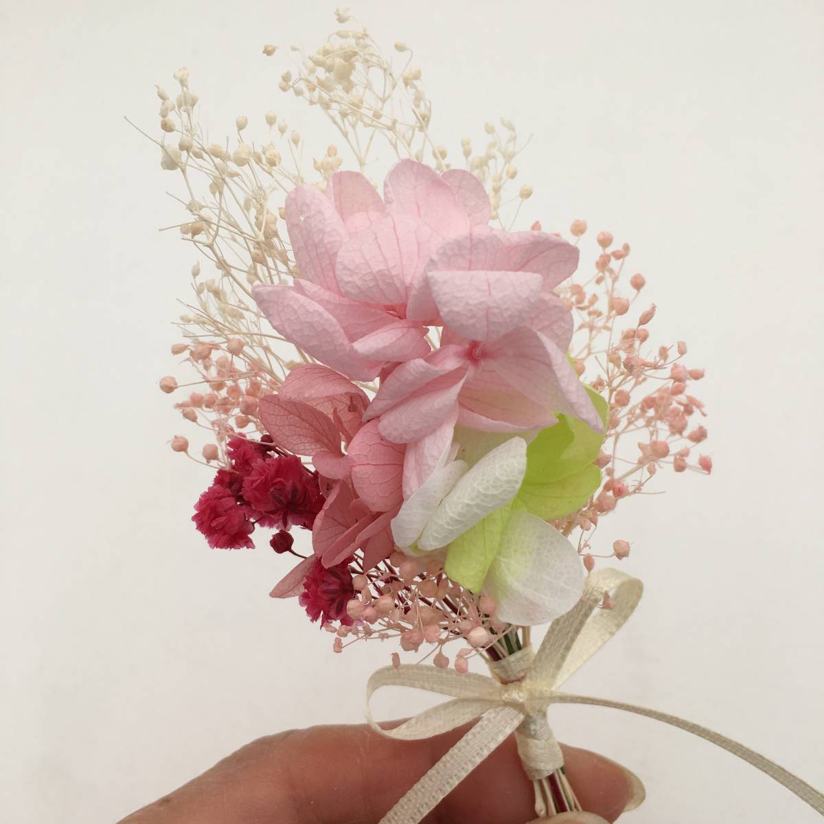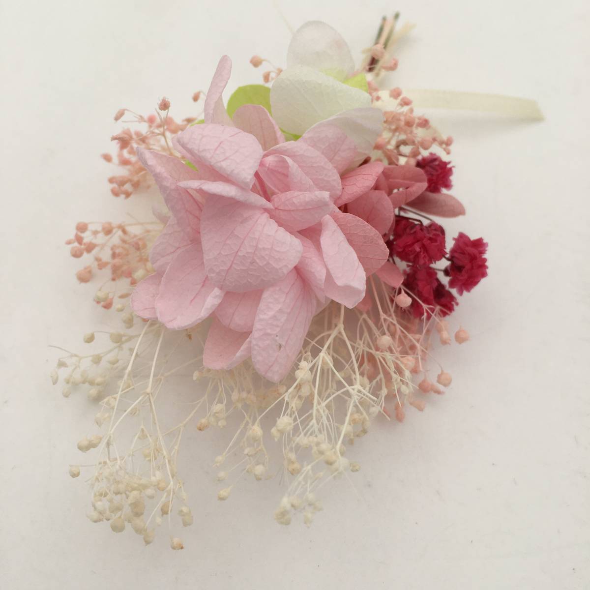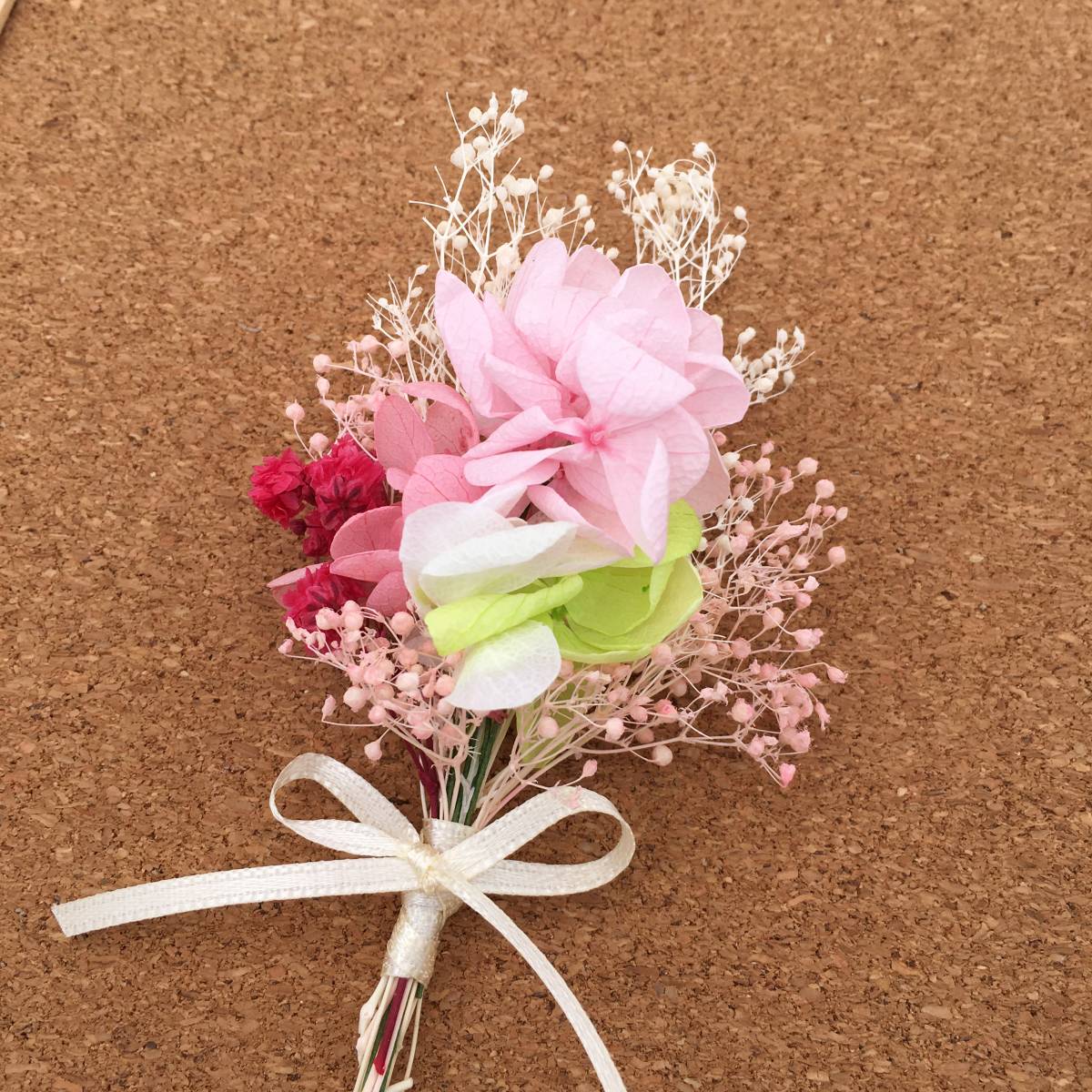 素材:プリザーブドフラワー(あじさい、カスミソウ)