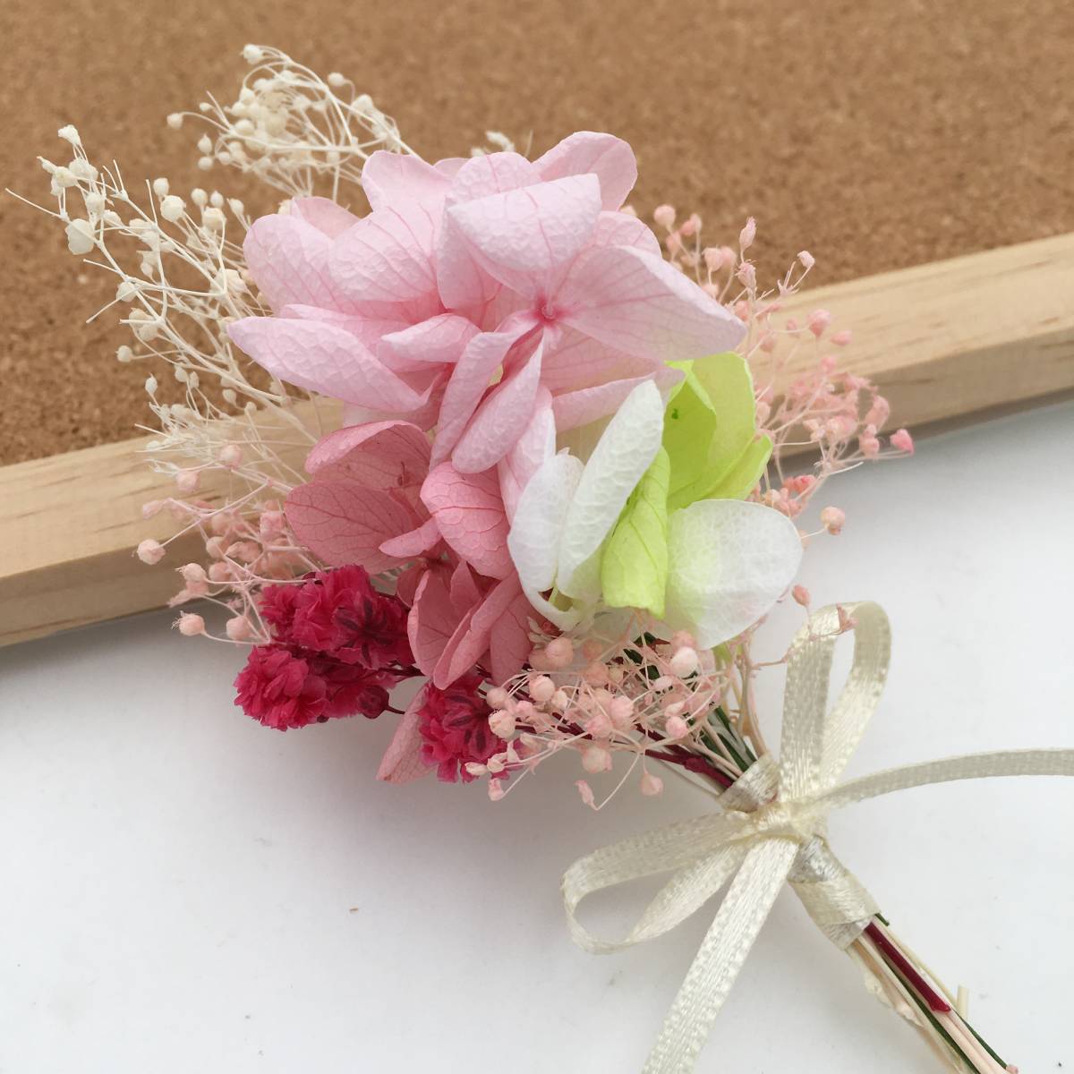 <新品>プリザーブドフラワー ブーケ 花束 ピンク ハンドメイド アジサイ かすみ草 インテリア お礼 お祝い ギフト プレゼント