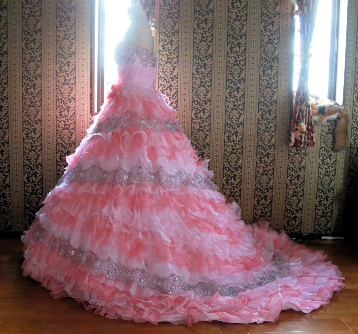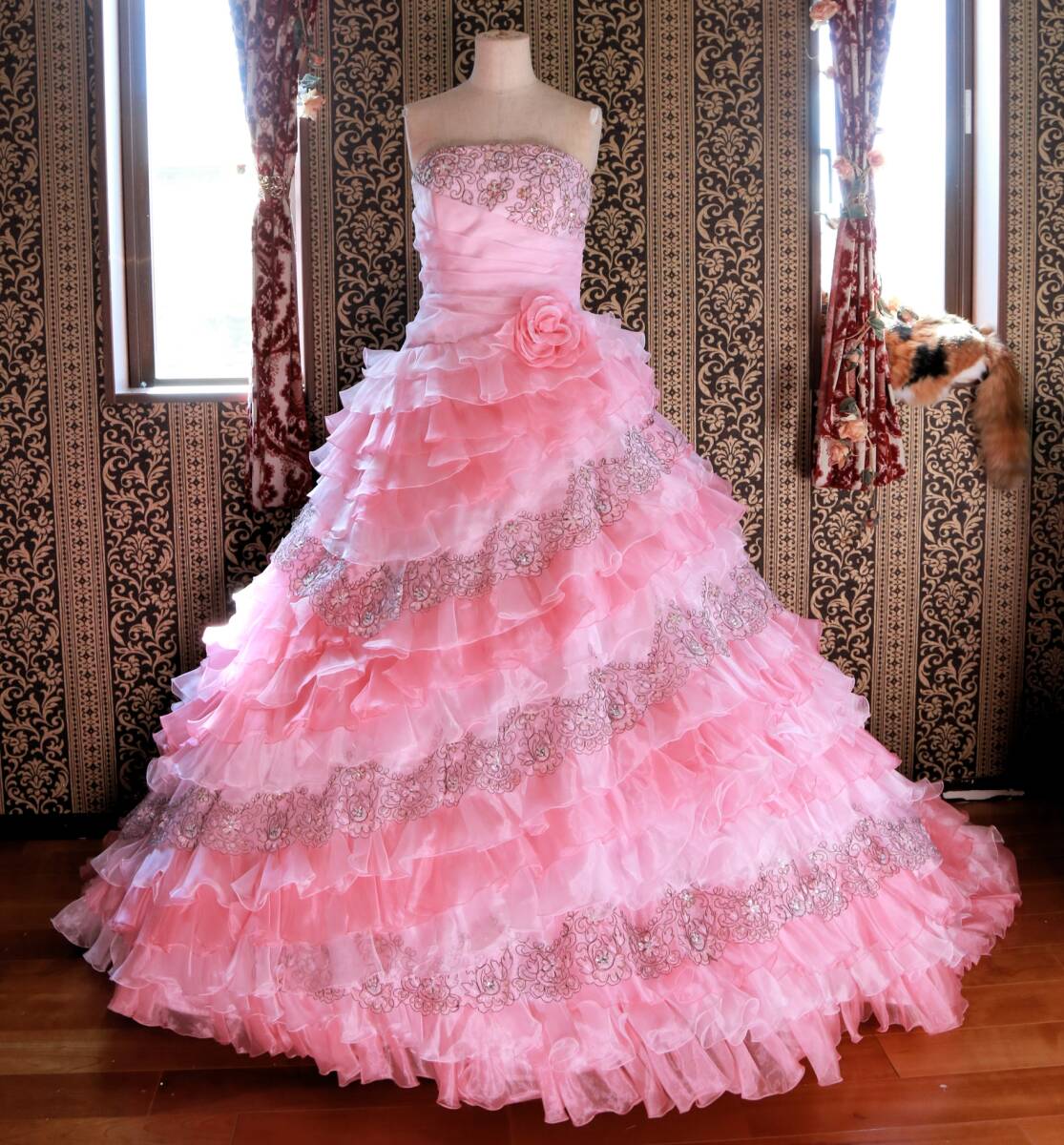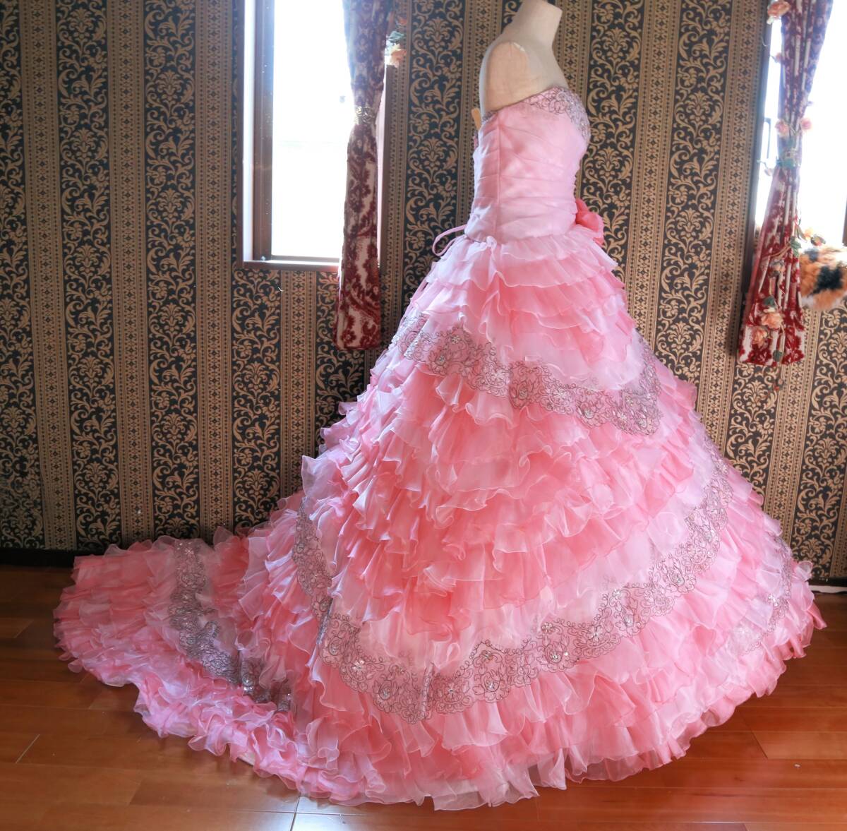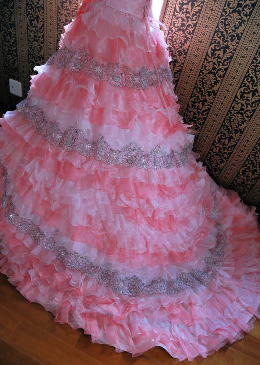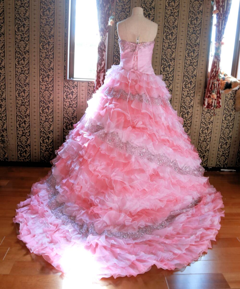 希少な大きいサイズ高級ウエディングドレス13号15号17号LL~4L編み上げ調節可能ピンク系ミックスカラードレス