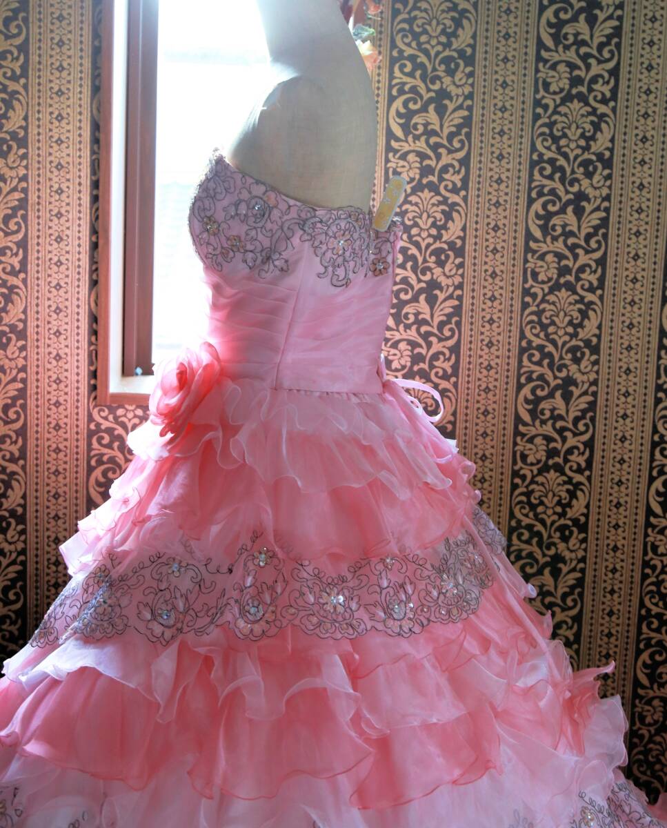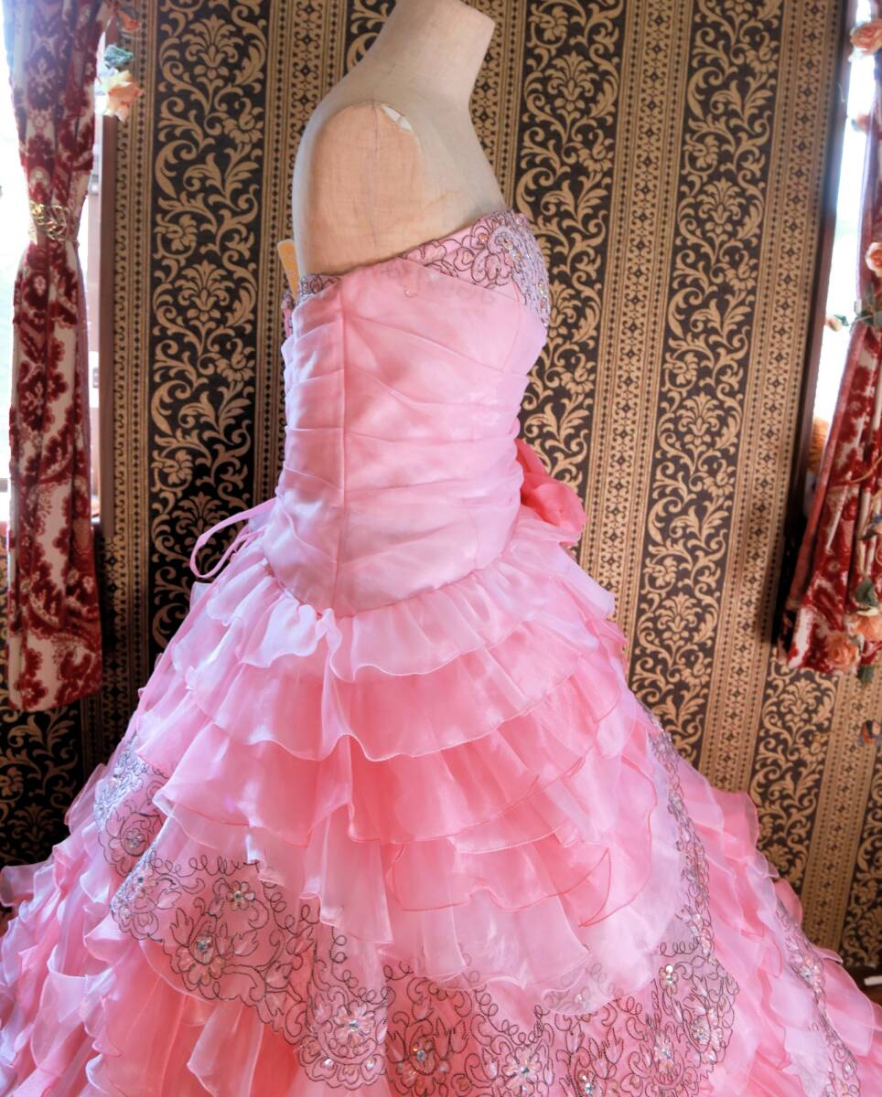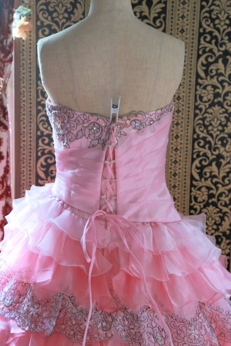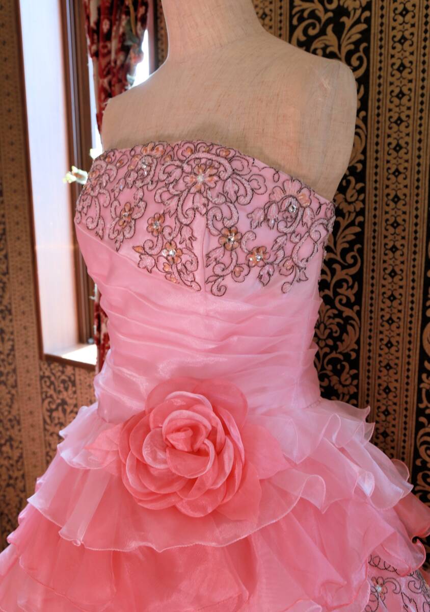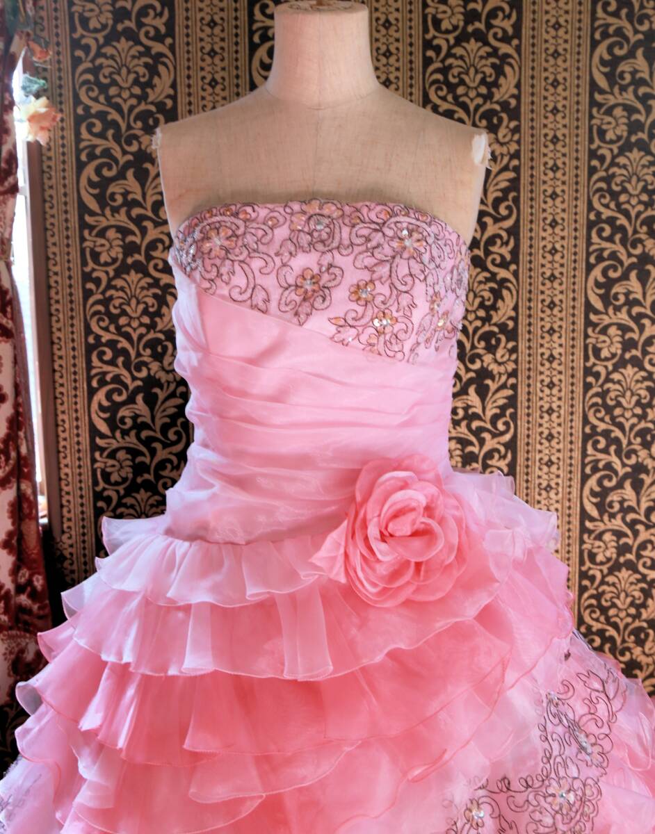 希少な大きいサイズ高級ウエディングドレス13号15号17号LL~4L編み上げ調節可能ピンク系ミックスカラードレス
