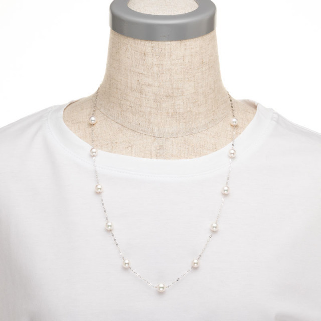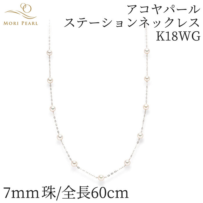 アコヤパールステーションネックレス 7mm/60cm K18WG アコヤ 真珠 卒業 入学式 結婚式 冠婚葬祭