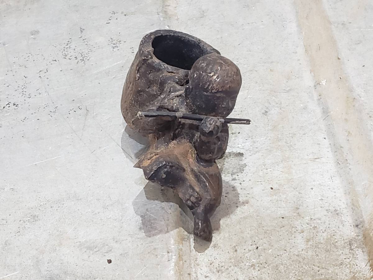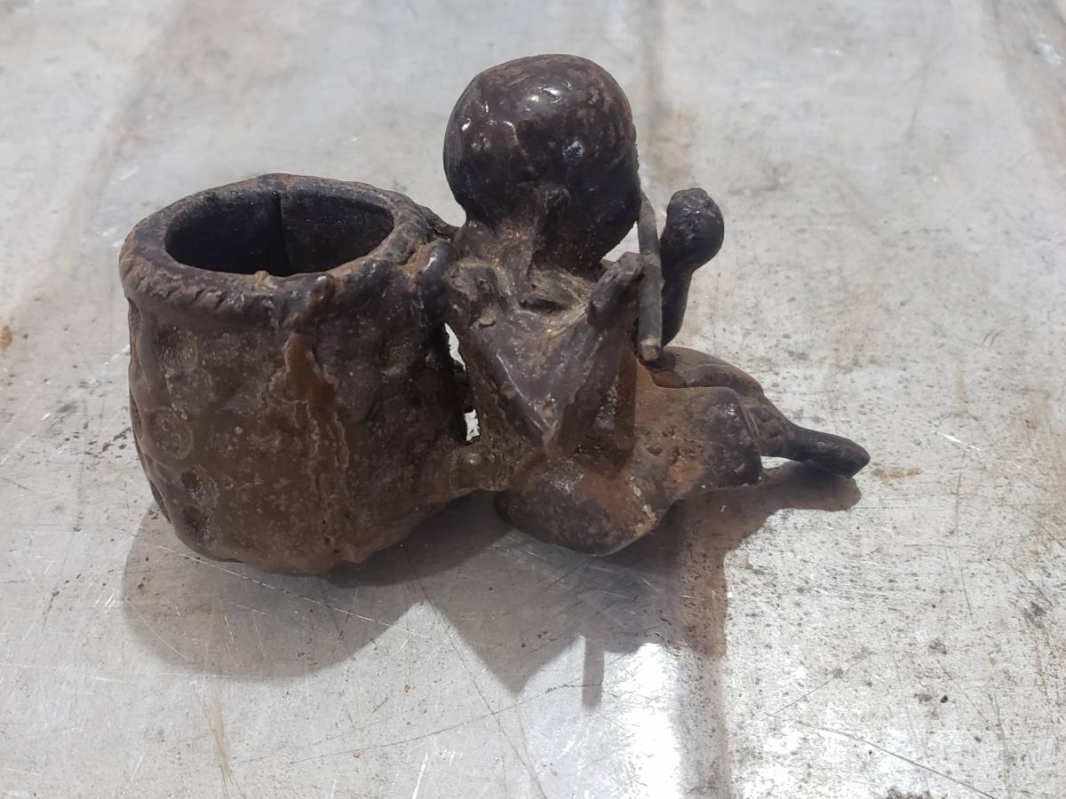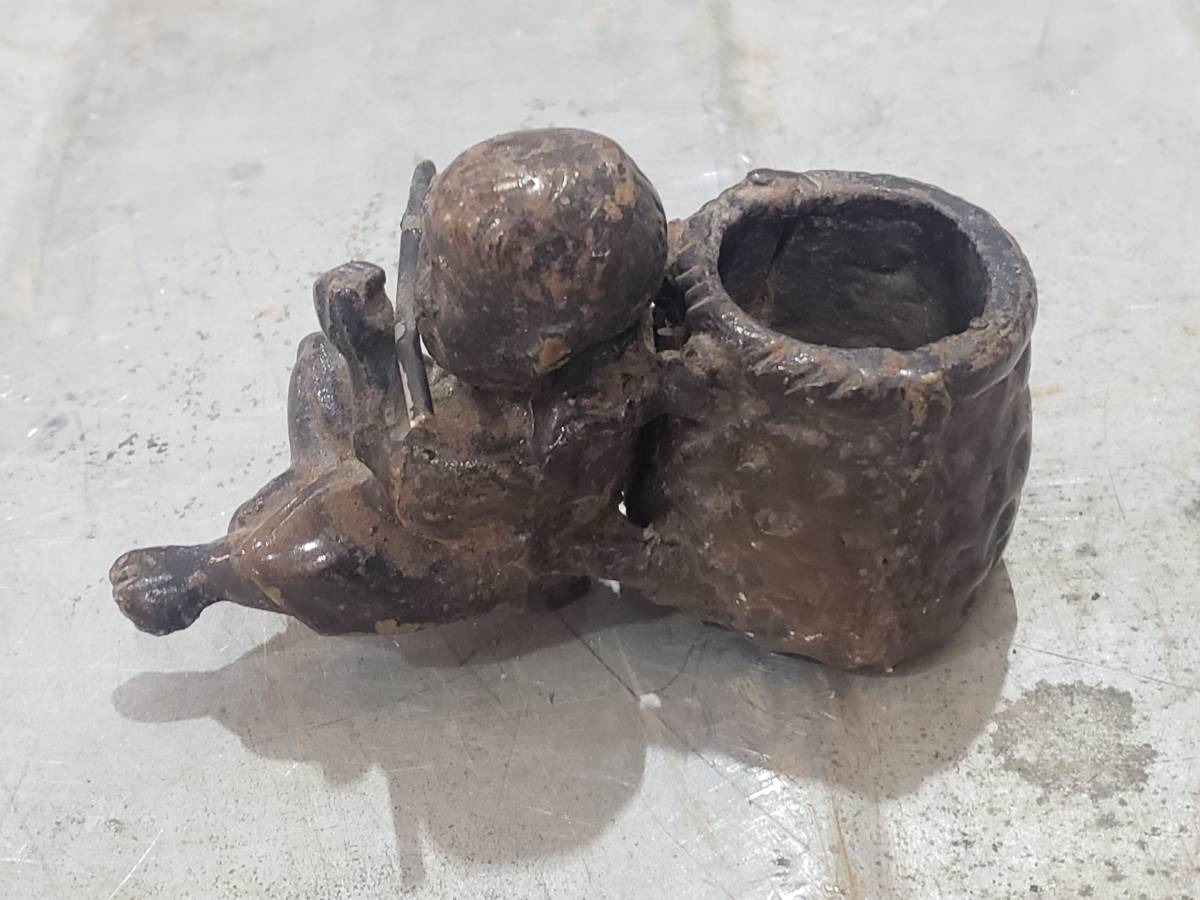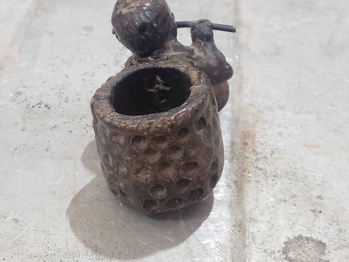Q5615 現状渡し☆売切☆鉄製 籠を背負った少年 置物 オブジェ 昭和 レトロ アンティーク
