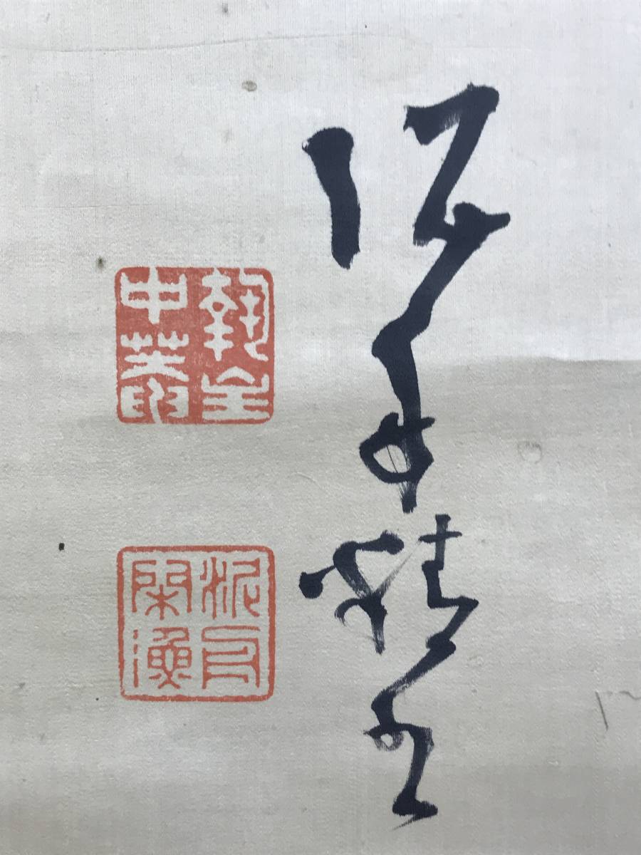 【作品状態】 本紙は絖本です。本紙は薄汚れ、多少のシミあります。表装は全体に時代感あります。