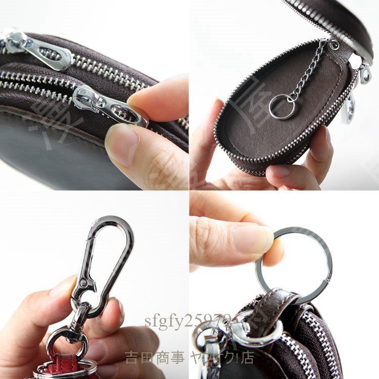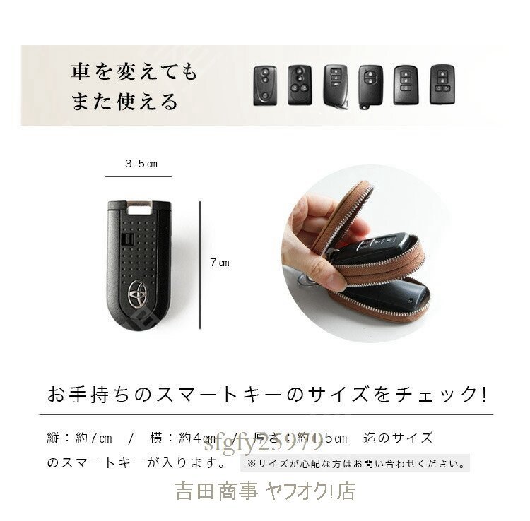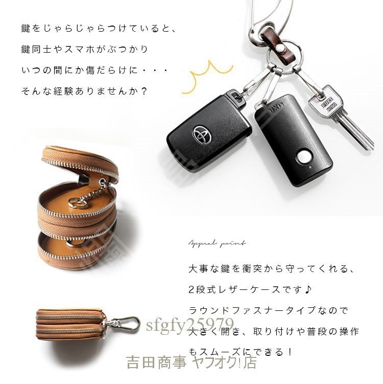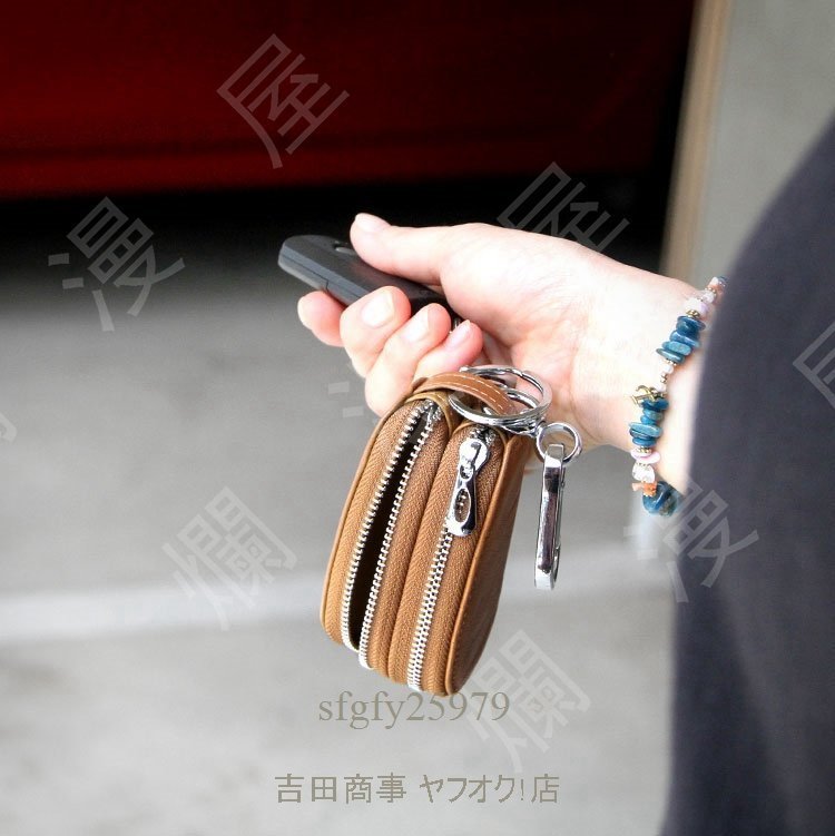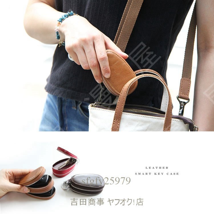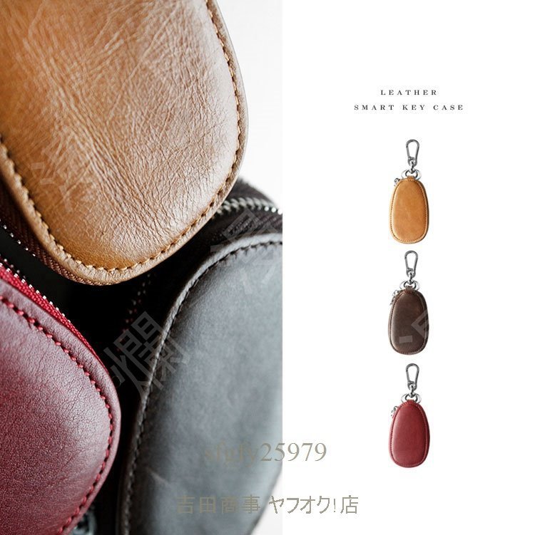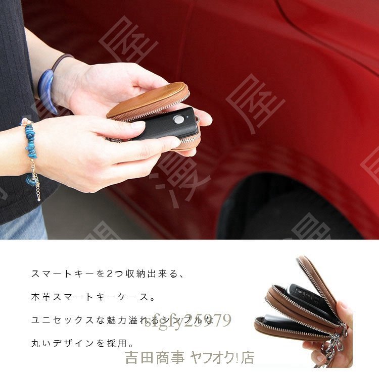 A6084☆新品スマートキーケース 2個収納 レディース 本革 革 シンプル おしゃれ オイルレザー ラウンドファスナー ダブルファスナー