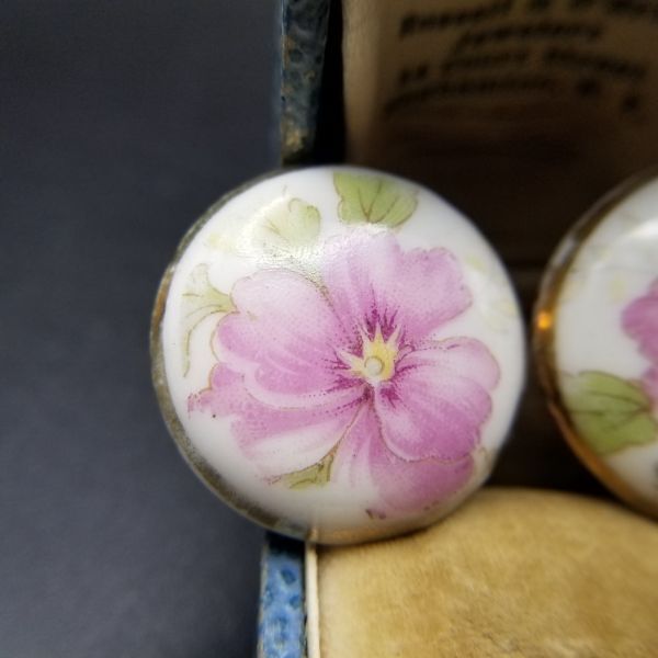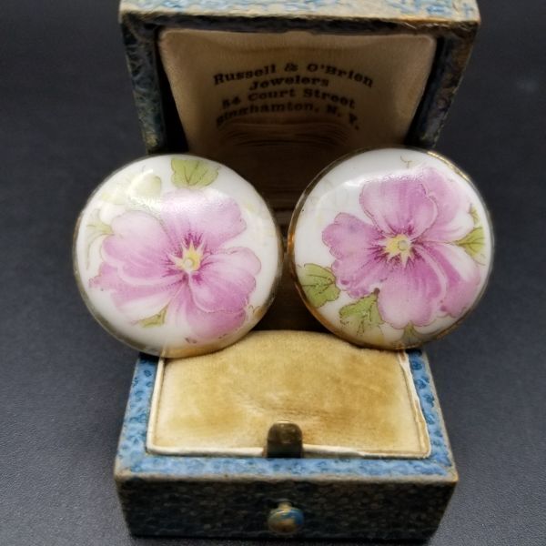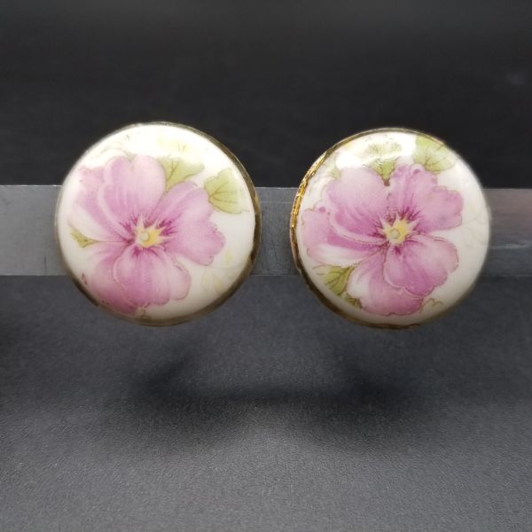 紫のパンジー ペイント 陶器 米国 ヴィンテージ イヤリング シフローラル 花言葉 誠実 レトロキュート 上品 ラウンド SNL2