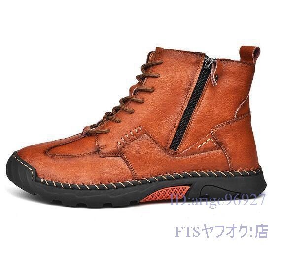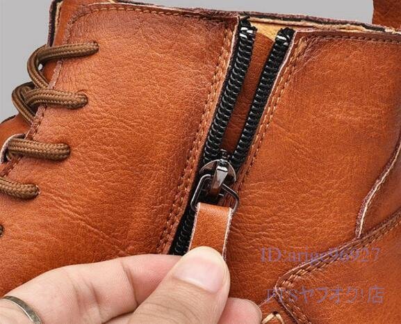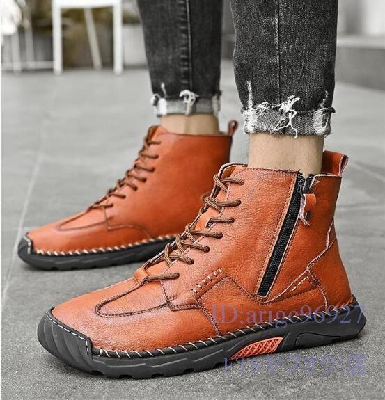A1996☆新品マーティンブーツ ハイカット スニーカー ドライビングアウトドアシューズ ショートブーツ☆メンズ春秋 ブラウン 24.5cm