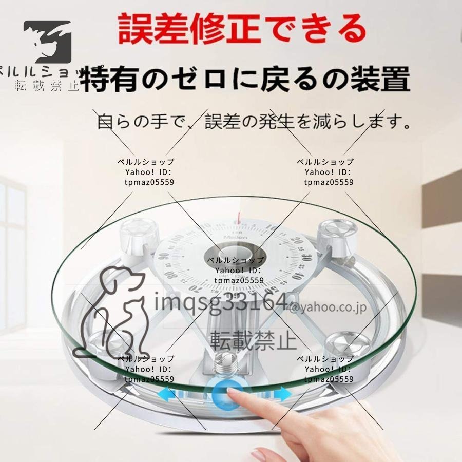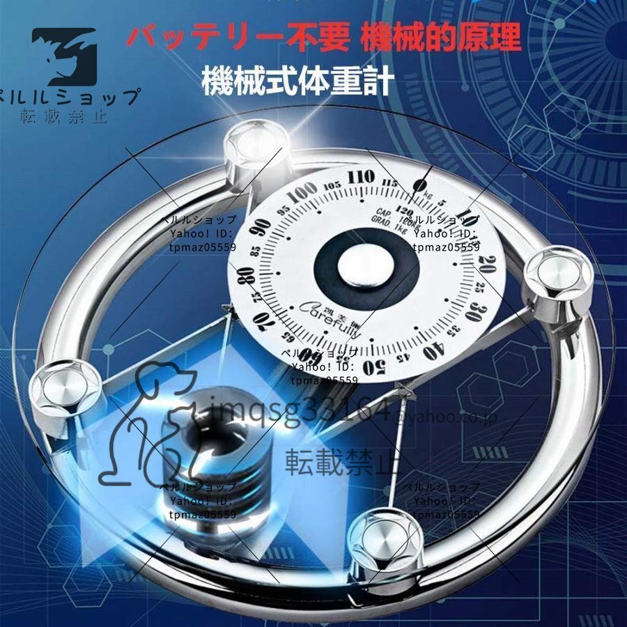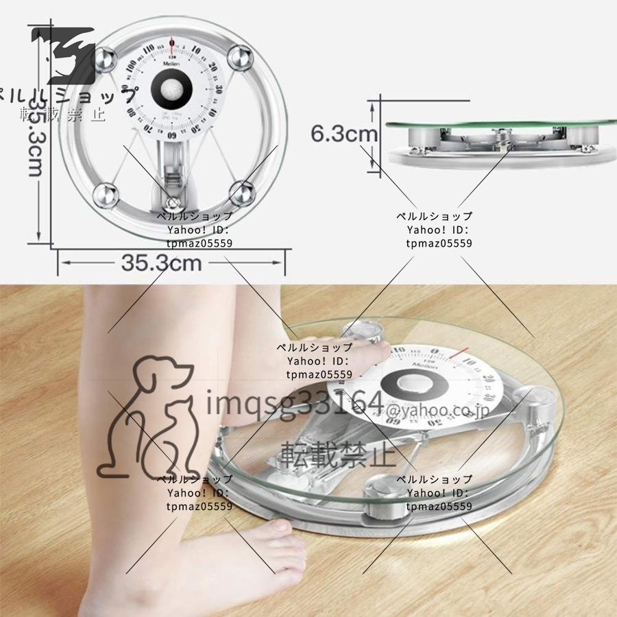 機械式体重計 体重計 バスルームスケール 金属プラットフォームと強化ガラスを組む アナログ ヘルスメーター 高精度、滑り止め