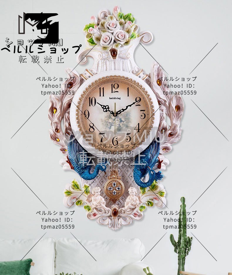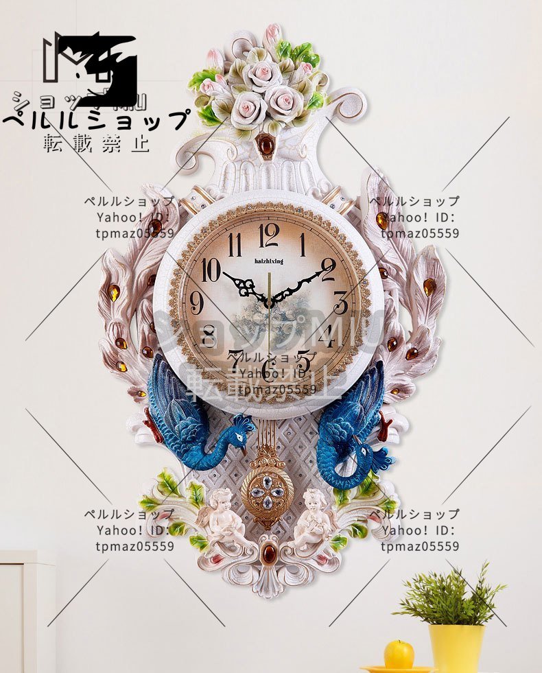 極美品 ★壁掛け時計 おしゃれ 孔雀 クジャク くじゃく オブ