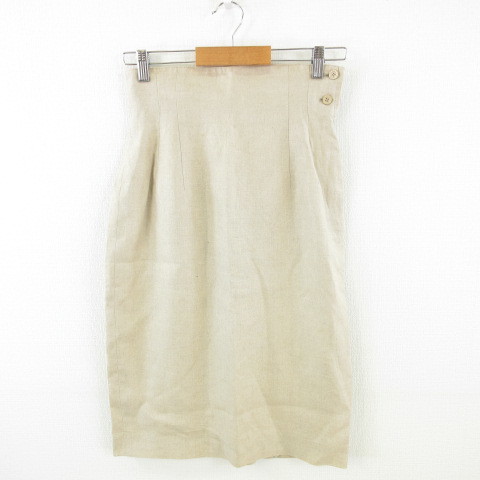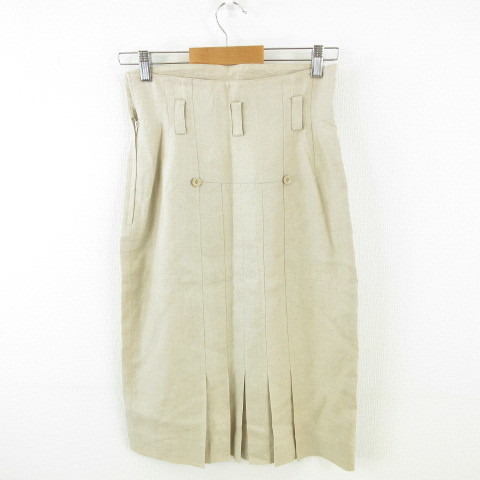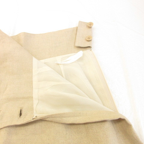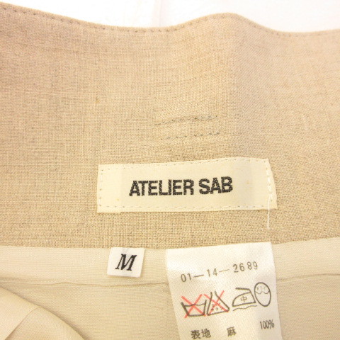 アトリエサブ ATELIER SAB リネンスカート ハイウエスト ひざ丈 ベージュ M *A274 レディース