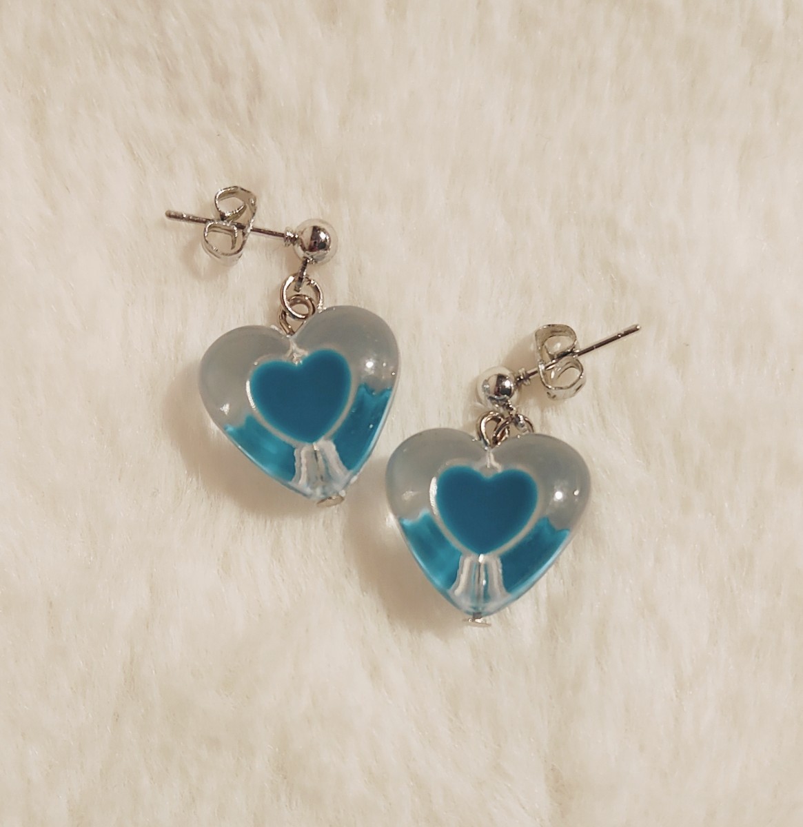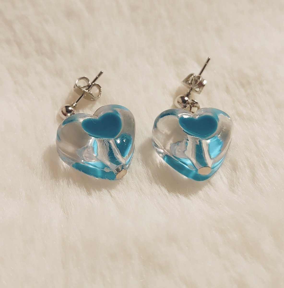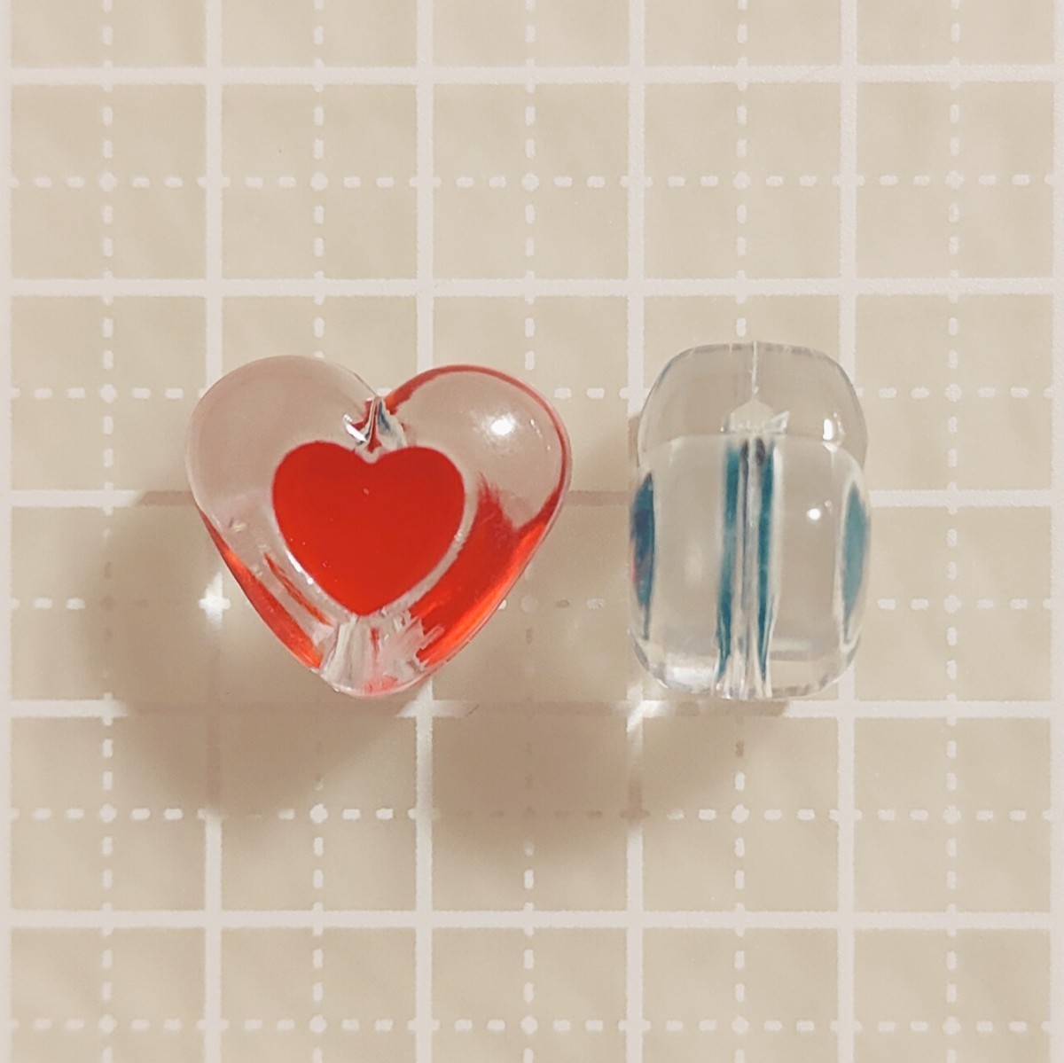★画像②→反射してチャームの詳細が分かりにくいのですが、両面とも外側がクリアで、中央のハートがブルーとなっております。