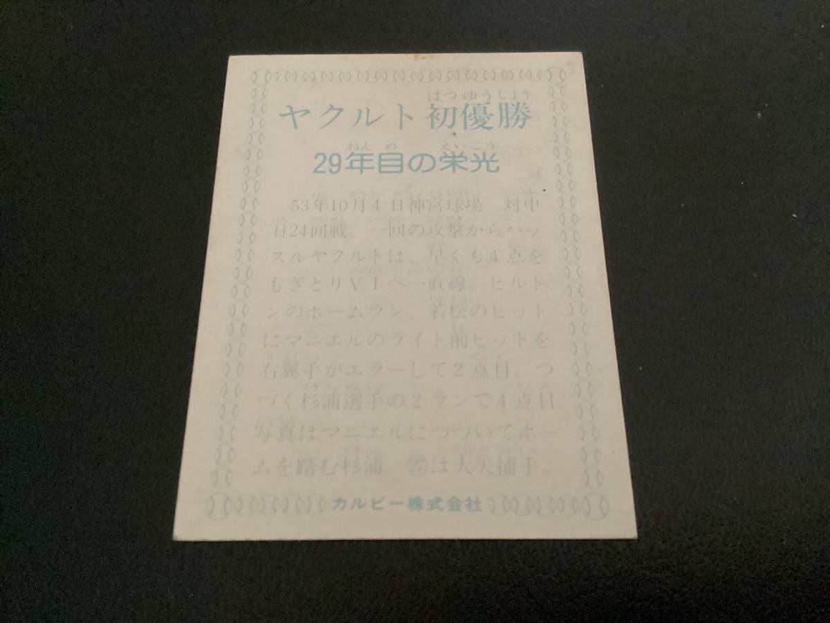 良品 カルビー78年 マニエル・杉浦・大矢(ヤクルト) ヤクルト初優勝 29年目の栄光 赤枠 プロ野球カード