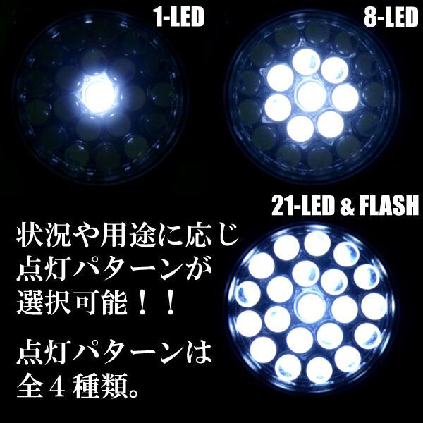 ・1灯、8灯、21灯、21灯点滅の4段階切り替え可能