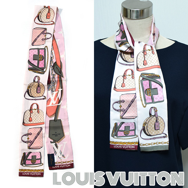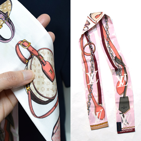 モノグラム柄のバッグがプリントされたバンドースカーフです。バッグに巻きつけても可愛いです。
