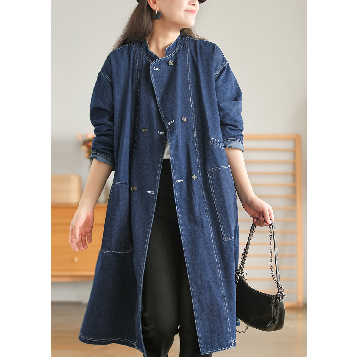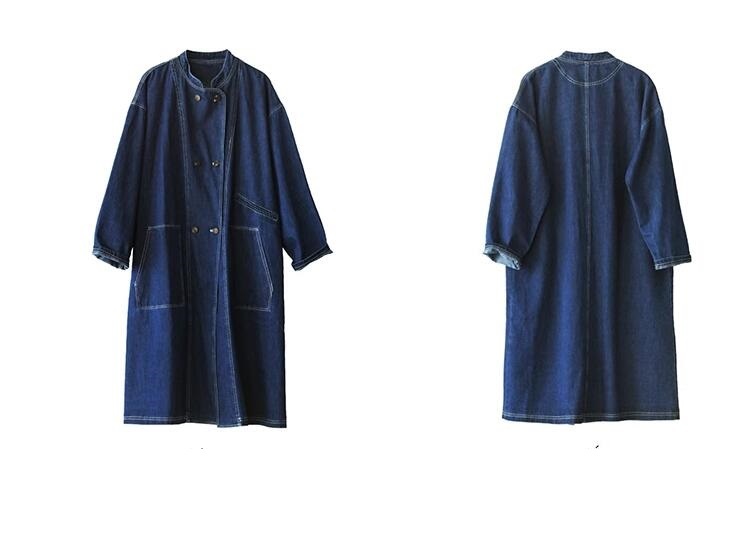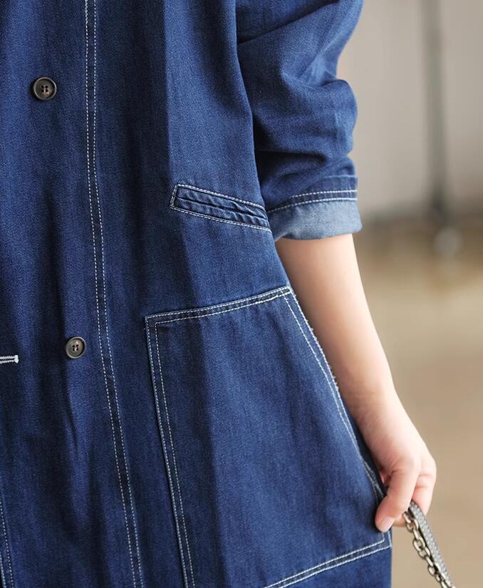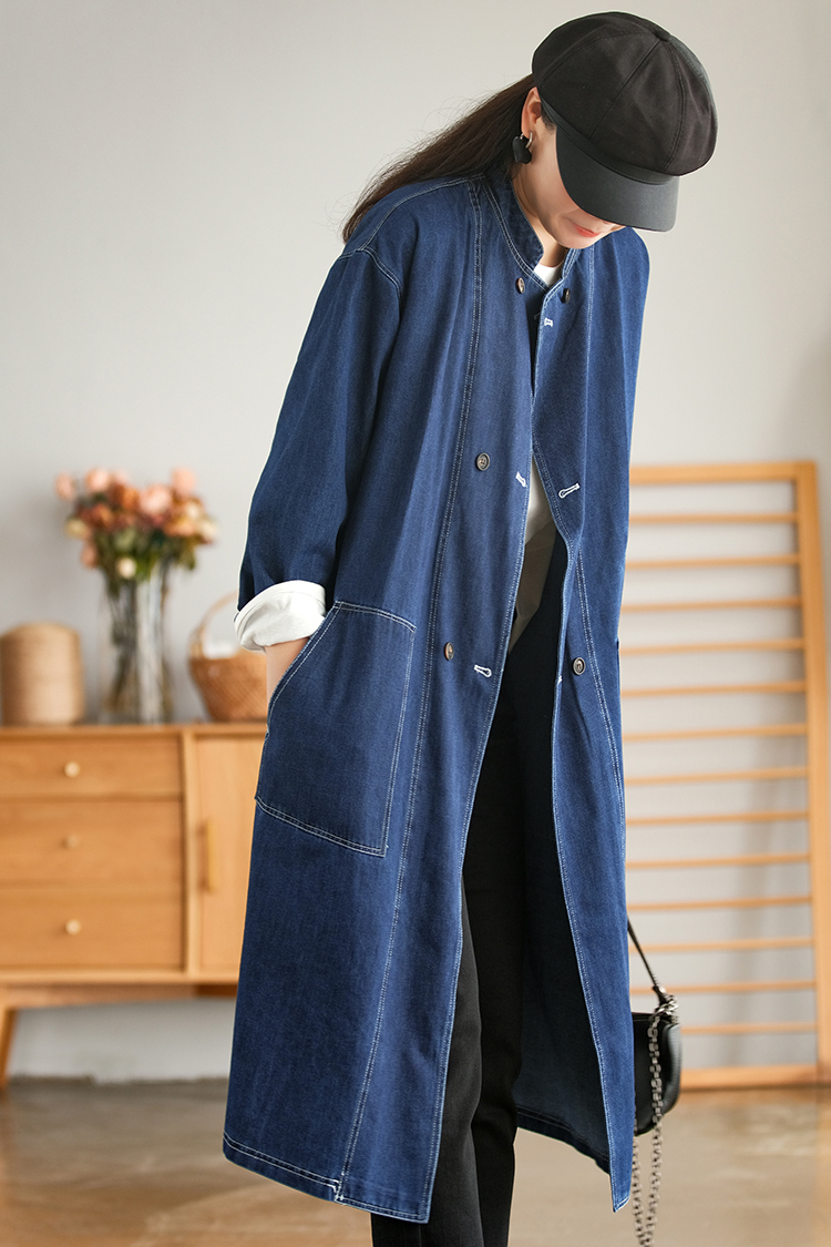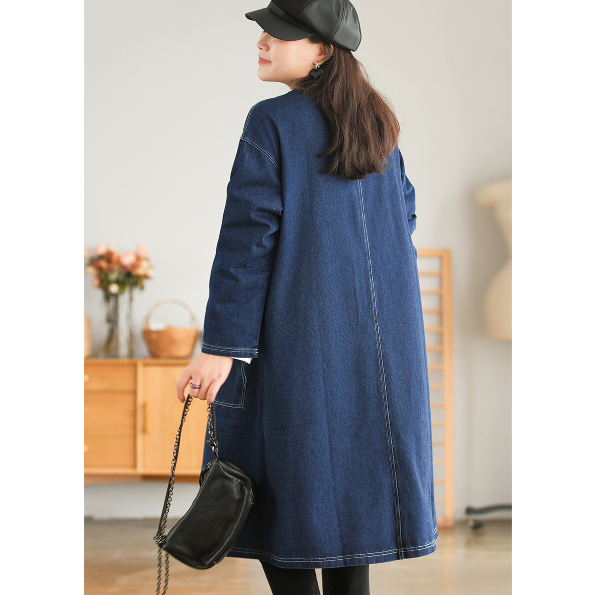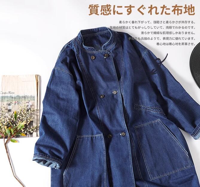 新作 コート ジーンズ デニム生地 ブルー フリーサイズ 大人可愛 綿 通勤着 普段着 前開け 羽織物 ロング