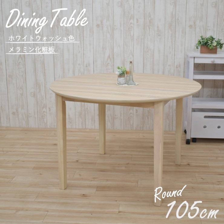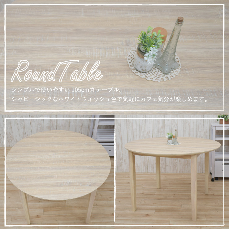 ダイニングテーブル 丸 幅105cm ホワイトウォッシュ色 mac105-360ww 2人 4人 ブロカント風 シンプル メラミン化粧板 円 4s-1k-230 tn