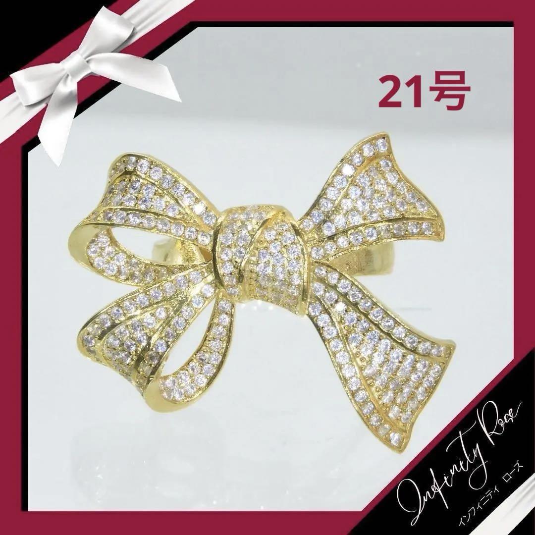 (R042G)21号 ゴールドデカ姫リボンモチーフリング リボンリング 指輪