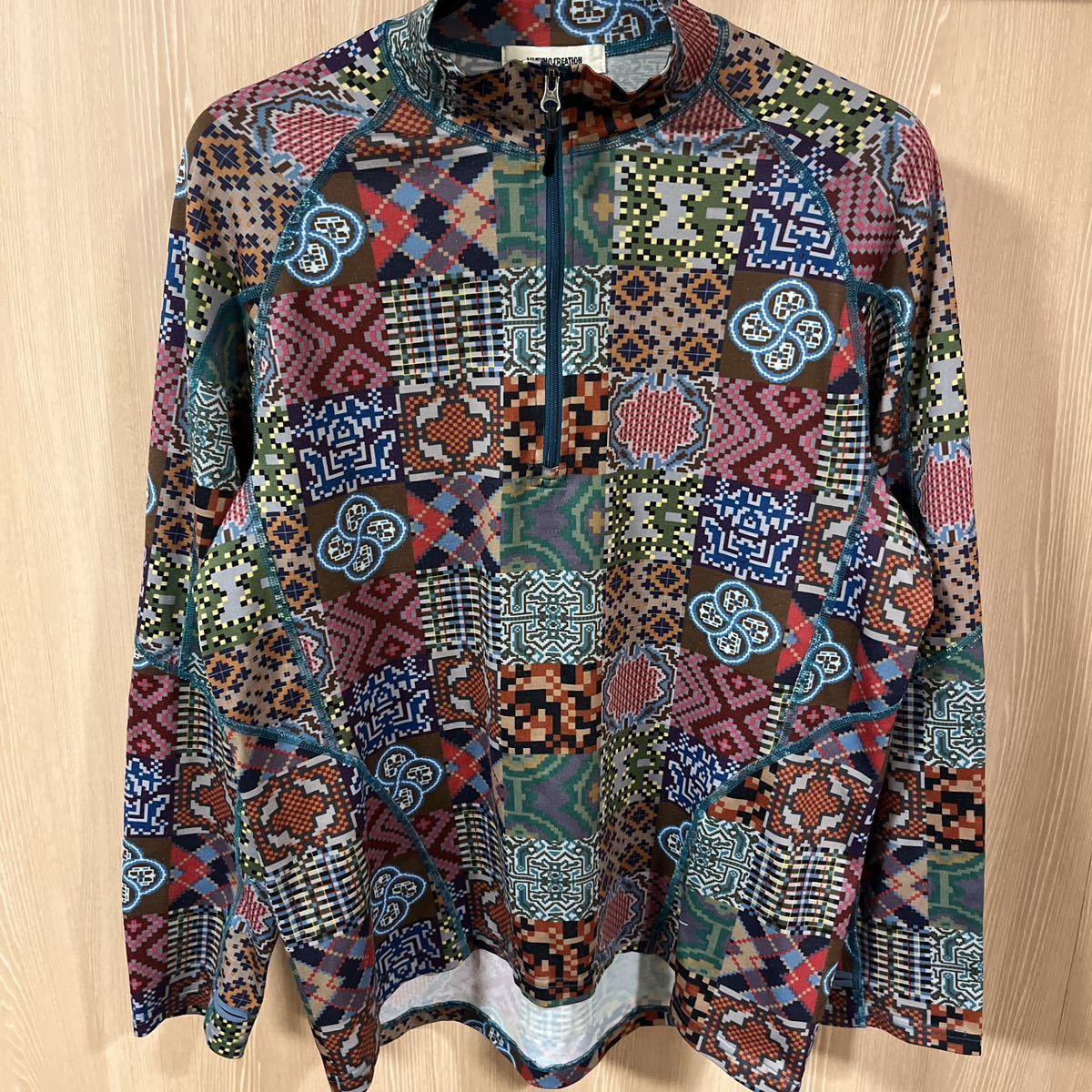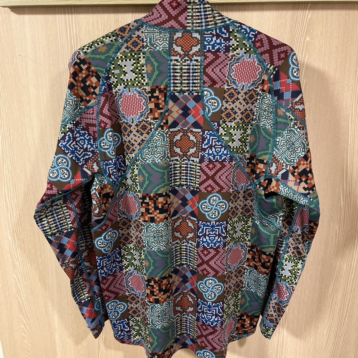 また、前面にあしらわれたカラフルなプリントもこのアイテムの特徴で、80年代の力強さやビット数の少ない、ぎざぎざとしたローテクなグラフィックの雰囲気がイメージとされています。