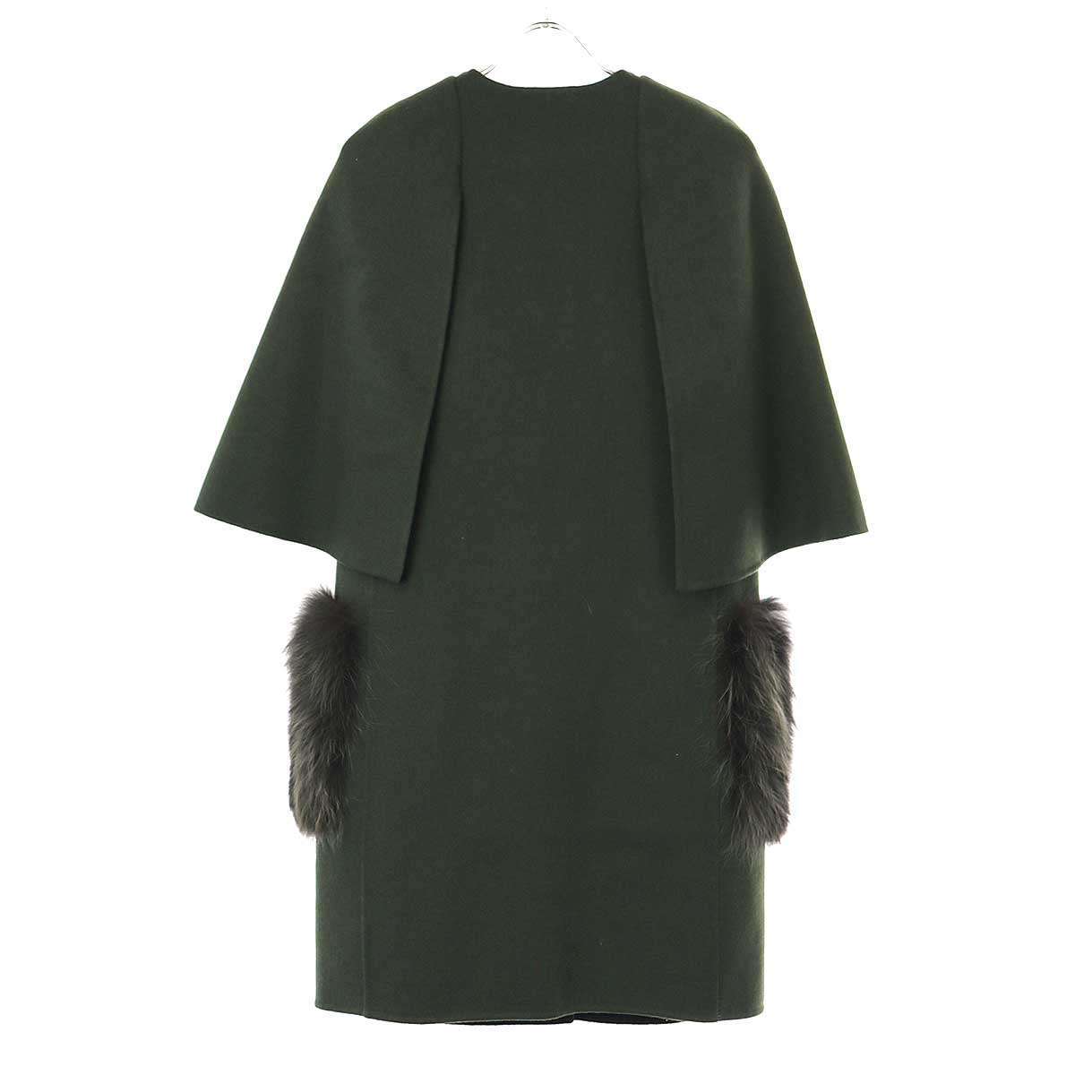 FENDI フェンディ 18AW フォックスファーポケットケープコート グリーン 36 FF8369 W1D IT9VPTNHKBDM