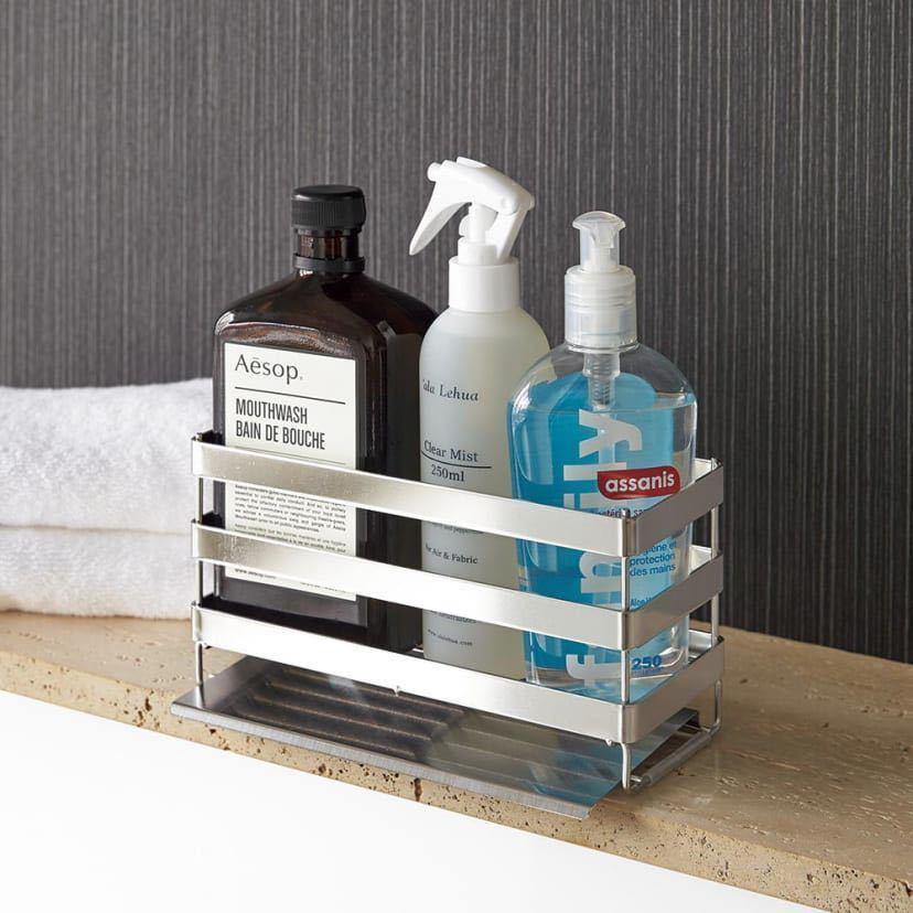 ◆手洗い石鹸のボトル、除菌用アルコール、マウスウォッシュ、歯磨き粉、洗顔用洗剤などをすっきり整理整頓できます。