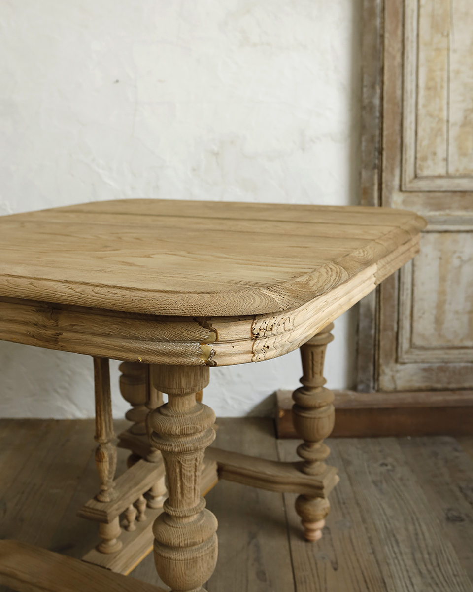 From : France フランスにて買い付けたソリッドウッドの風合いが魅力的なダイニングテーブルのご紹介。 オーク材ならではの無骨で凹凸感のある木肌に素材感をご堪能いただけ、ナチュラルな風貌ながらも洗練されたエレガントなディテールを併せ持った希少なひと品。 経年変化を帯びた木の表情はどこか懐かしく温もりと心地よさを秘め、格式高いフォルムと調和しハイセンスな空間を創造いただけます。 もともとはサイズ拡張式のテーブルでしたが、こちらのアイテムは天板が固定されています。 商品はアンティーク品のため、お写真では伝わり難い色褪せや小傷などがございます。 追加のお写真をご希望の方はお気軽にお問合せくださいませ。 商品はメンテナンスを施してからの発送となりますので、お届けまでに7日間ほどお時間をいただく場合がございます。 お急ぎの方はお気軽にご相談くださいませ。 |