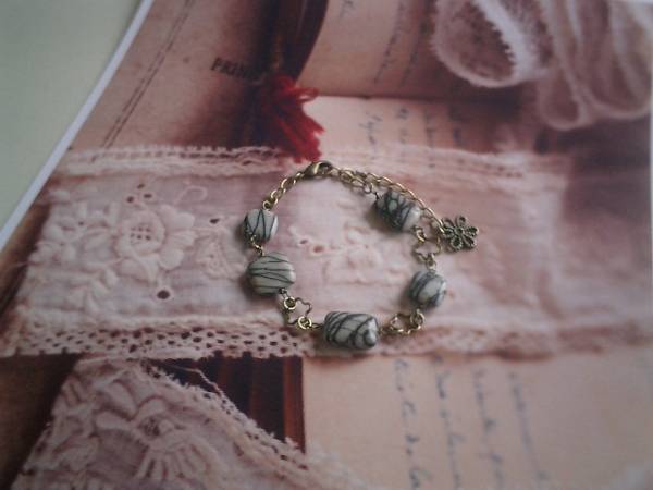 ジゼルの宝石箱・・シリーズです♪小粋なスクエア・・シックなジャスパーのブレスレットです♪大きさ違いのスクエアのジャスパーにフラワーモチーフのチャームを合わせて可憐な表情です♪ジャスパーは10ミリから14ミリ位までのフラットスクエアです♪長さは全長23センチ位で調節自由です♪お揃いのネックレスも出品しています♪シンプルで飽きのこないいつまでも着けられるデザインを考えて作りました!ハンドメイドをご理解頂いてノークレーム、ノーリターンでお願いします