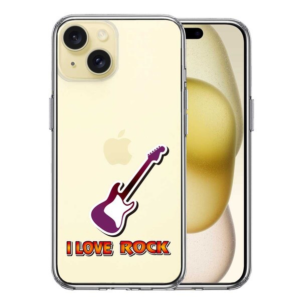 iPhone15 ケース クリア I LOVE ROCK ロック エレキギター スマホケース 側面ソフト 背面ハード ハイブリッド