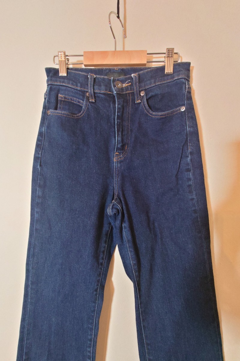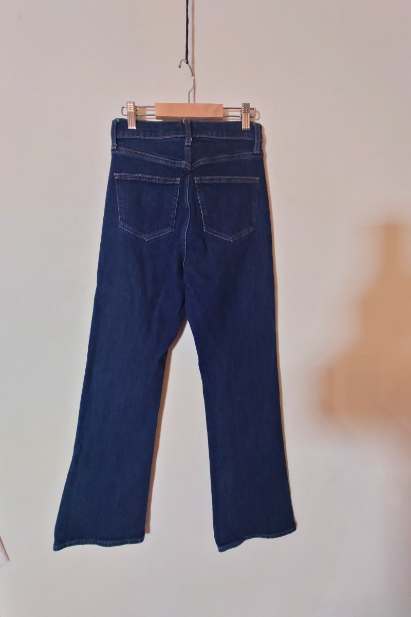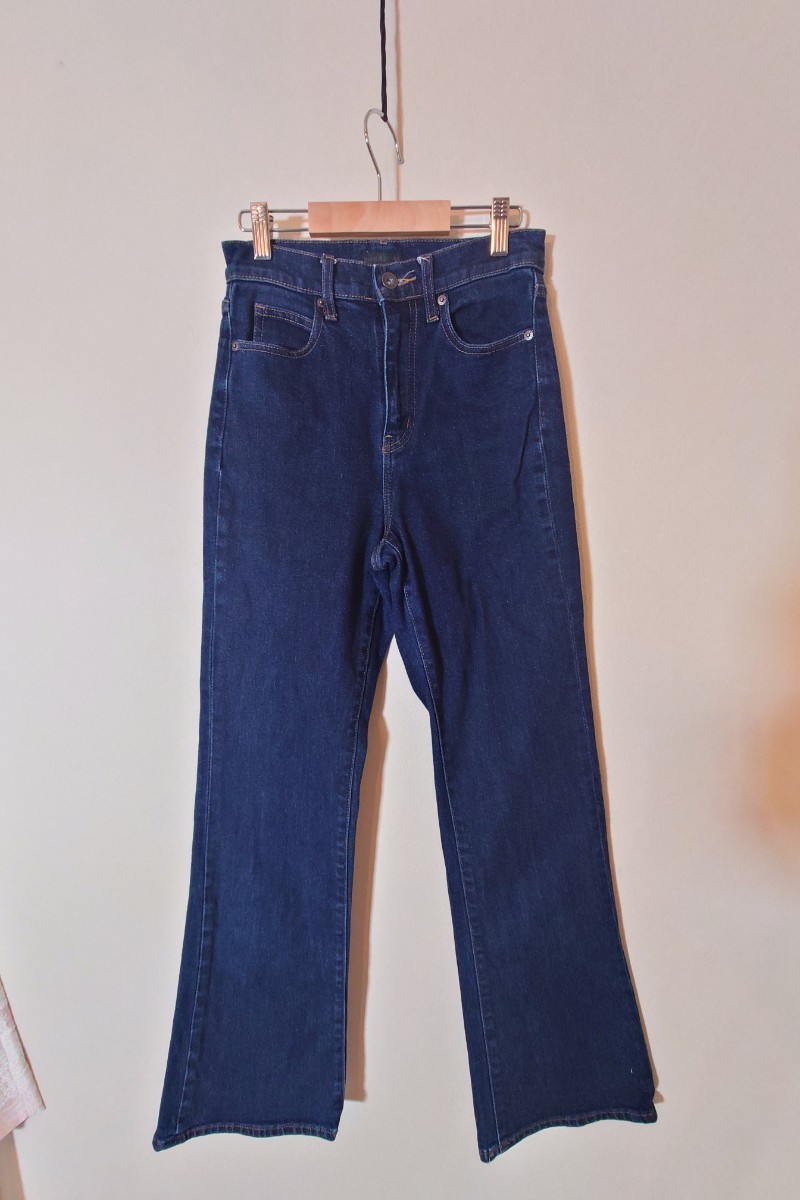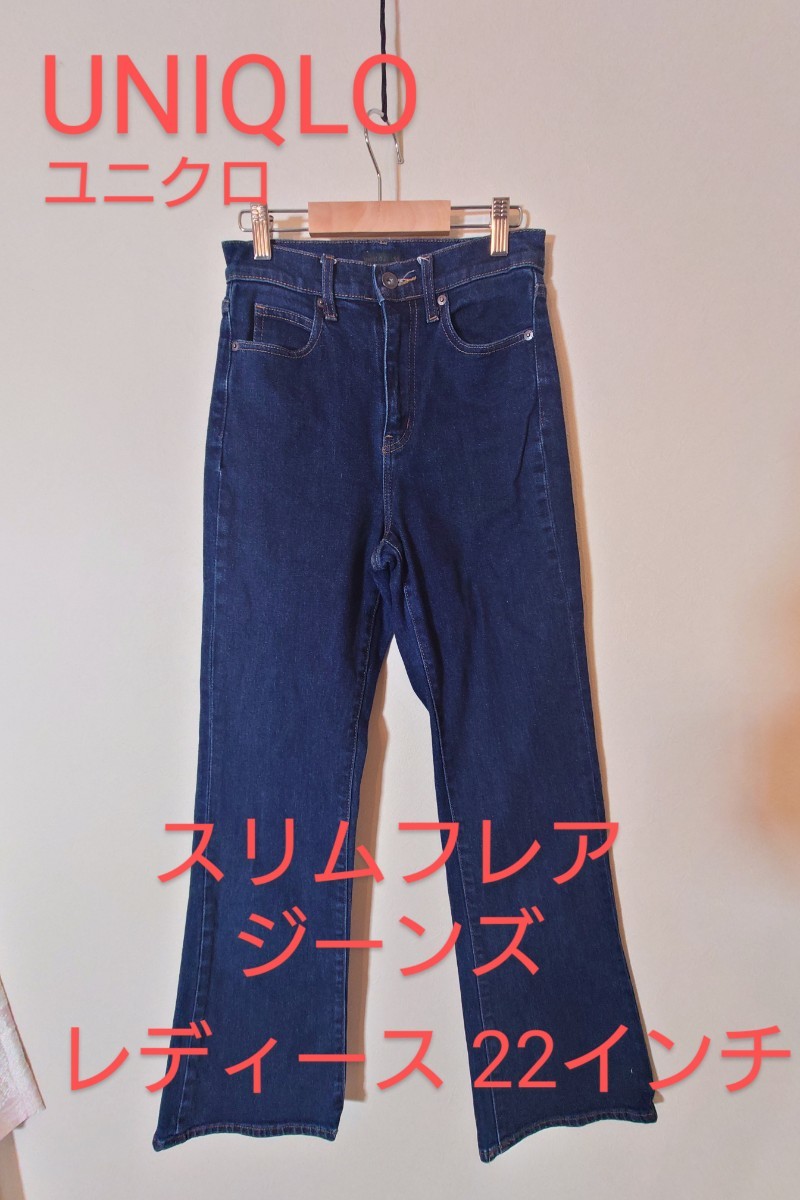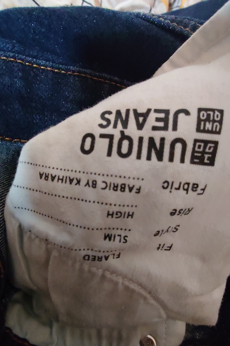 ユニクロの、ストレッチ仕様のフレアフィット、フレアジーンズになります。今年再燃したフレアスタイルです。