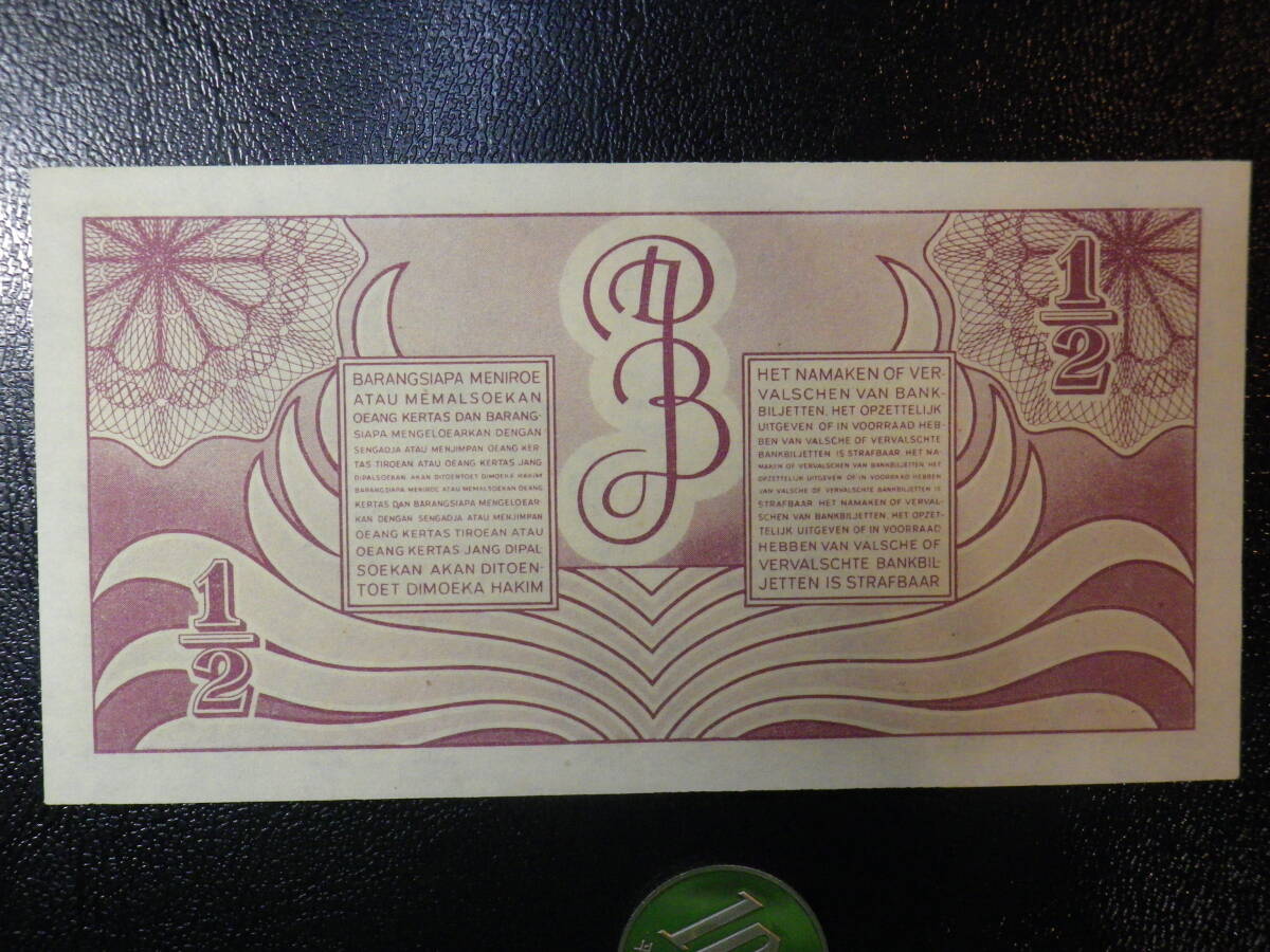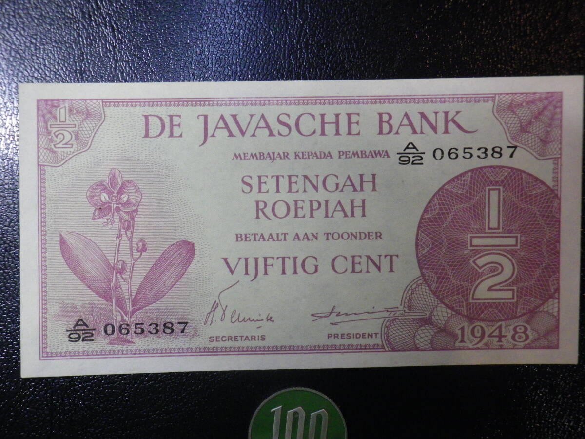 オランダ領インドネシア 蘭印ジャワ銀行 1948年 0.5(1/2)Rupiah 未使用