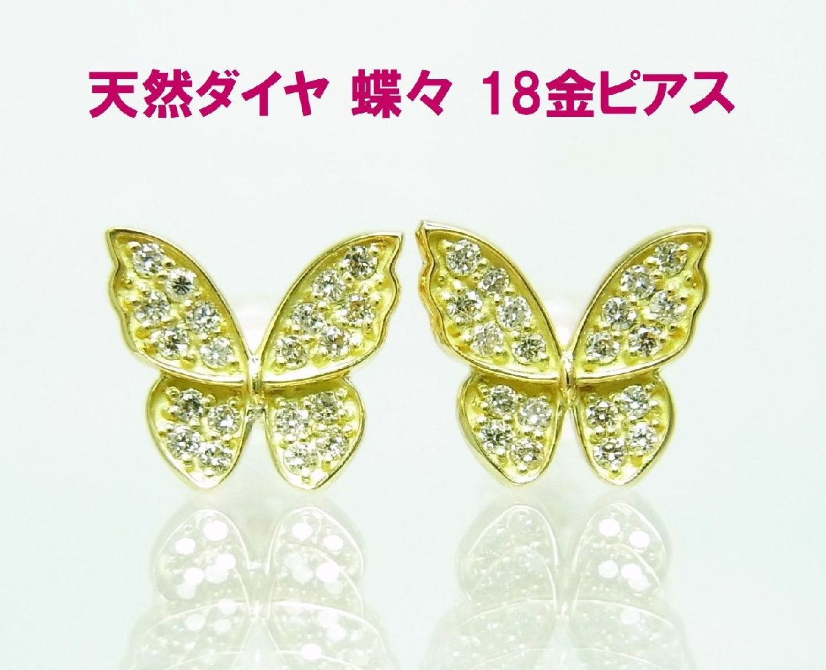 天然ダイヤモンド 蝶々 18金製 ピアス 同デザインリングもあり 動画あり 卸価格 送料込み