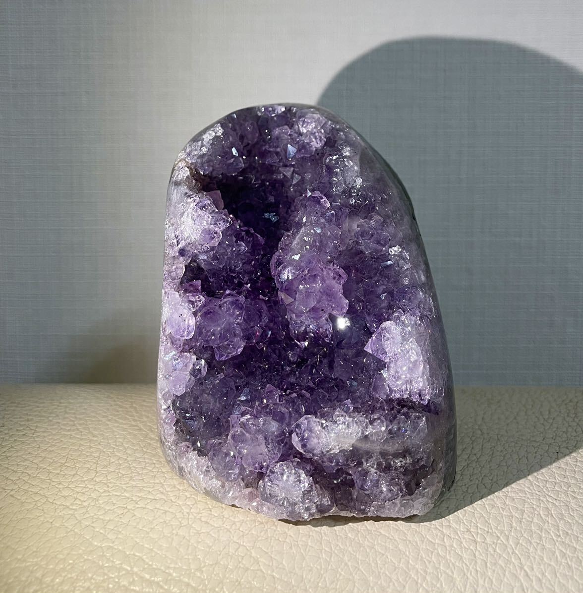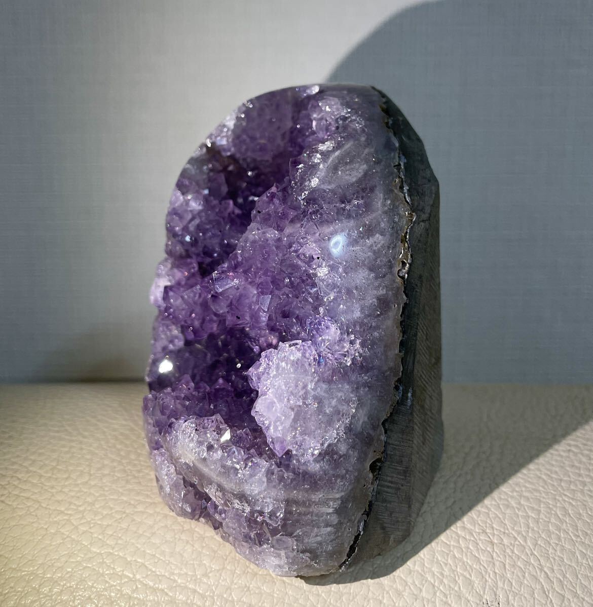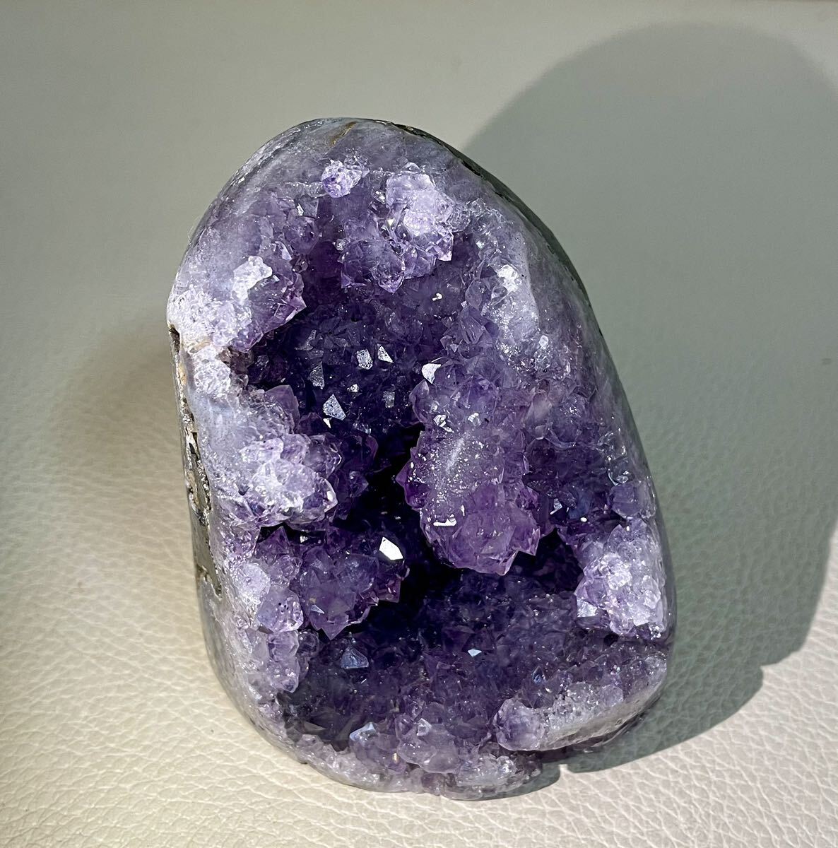 ●アメジストは2月の誕生石です、水晶でも最高位の石とされています。鉄分により紫色の色づいた水晶で、色むらが多いため色あ深く一様に見えるものほど上質とされています。高貴な色を表す紫色をしたアメジストは霊性の高い石とされ、マイナスのエネルギーをプラスに変える効果があるといわれています。第六感を高めて、邪悪なものから身を守るお守りとしての効果も期待でき、「愛の守護石」として大切な人との心の絆を深め、真実の愛を守り抜く強さをはぐくむともされます。