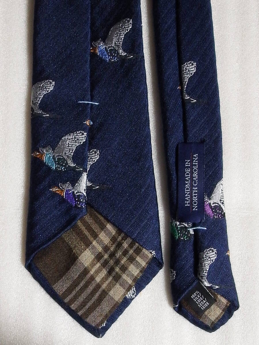 | 素材:100% SILK HANDMADE IN NORTH CAROLINA 全長 約156センチ 大剣幅 約8.5センチ (多少の誤差はご了承願います) かなり厚みのあるネクタイです。 保管時についた若干のシワがありますが、目立つダメージはなく、良好な状態だと思います。 |