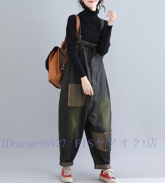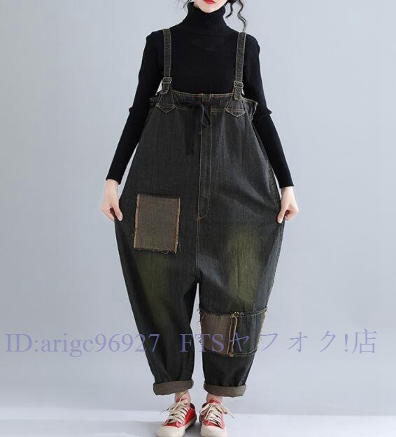 A7685★新品 レディース デニム オーバーオール サルエル パンツ サロペット 袴パンツ つなぎ 春夏秋 ゆったり 作業服 ポケット