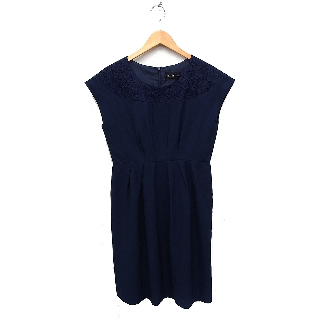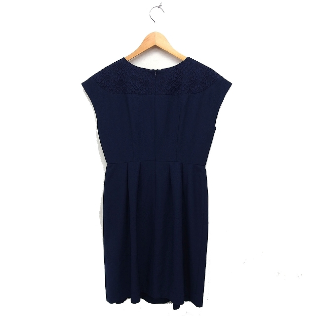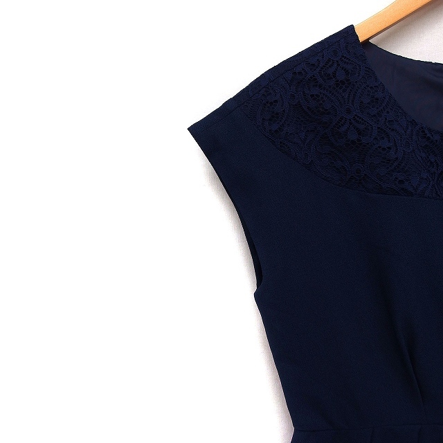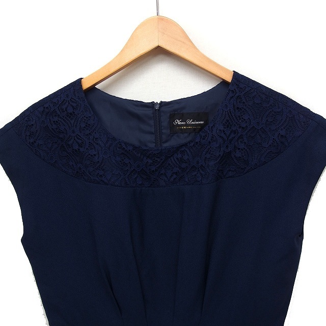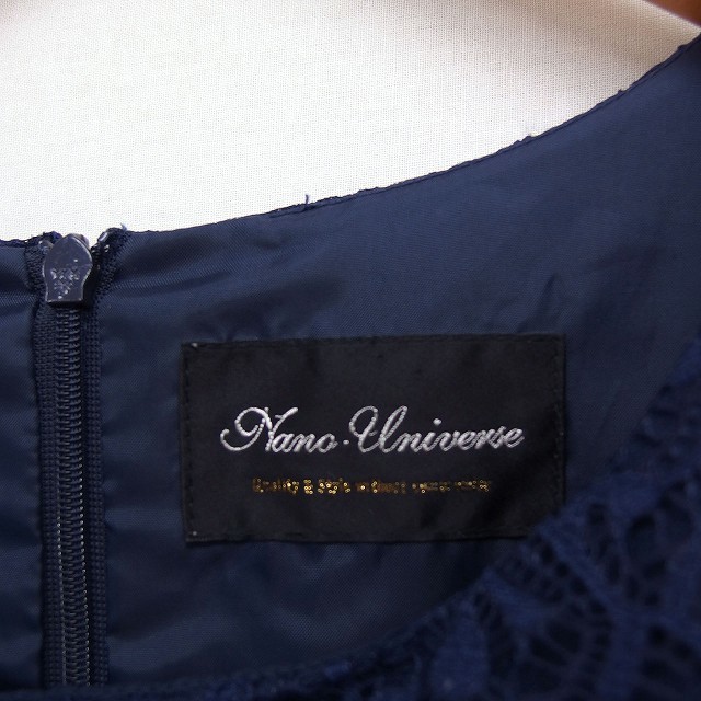 ナノユニバース nano universe フォーマル ワンピース ドレス レース フレンチスリーブ ひざ丈 ネイビー 紺 /FT13 レディース