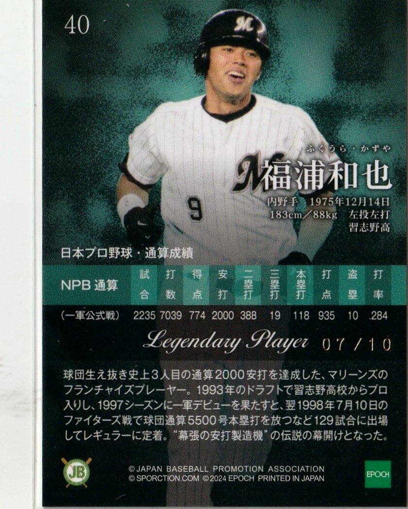 【#40 福浦和也 千葉ロッテマリーンズ】7/10 レギュラーカードパラレル HOLOGRAM B EPOCH 2023 日本プロ野球OBクラブ ホログラフィカ