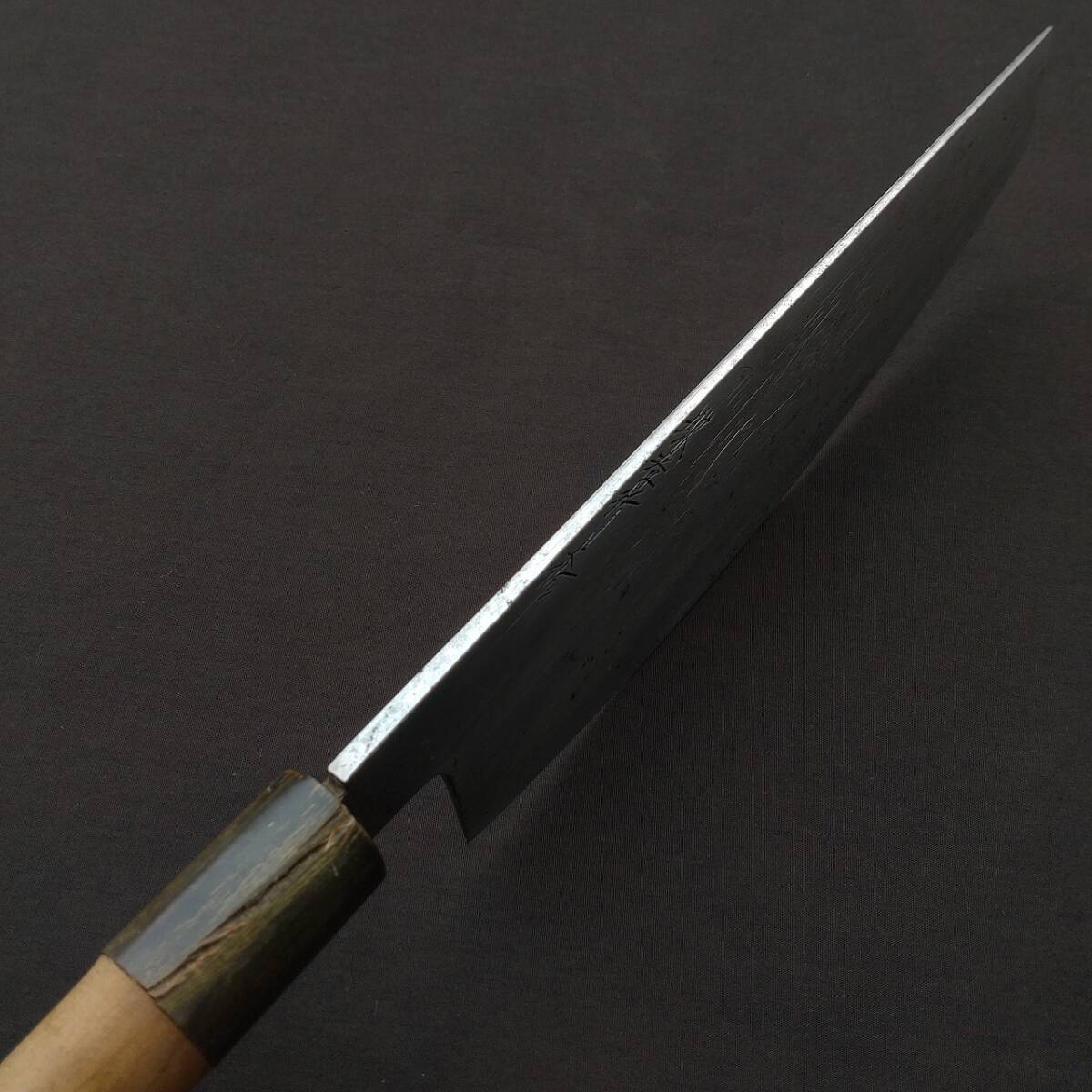 寿司切り包丁 堺孝行作 刃長約225㎜ 峰厚最大約4㎜ 重量約370g 水牛桂 すし包丁 寿司切包丁 鮨切包丁 庖丁 Japanese Kitchen Knife【4790】