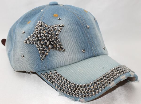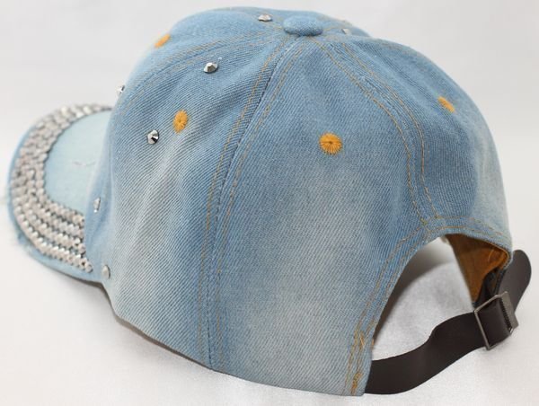 ★デニム生地にラインストーンをデコらせたとてもクールなキャップです。ダメージ加工がとてもかっこいいです。男女兼用でどなたでもかぶっていただけます。長さは後のベルトで調整できます。