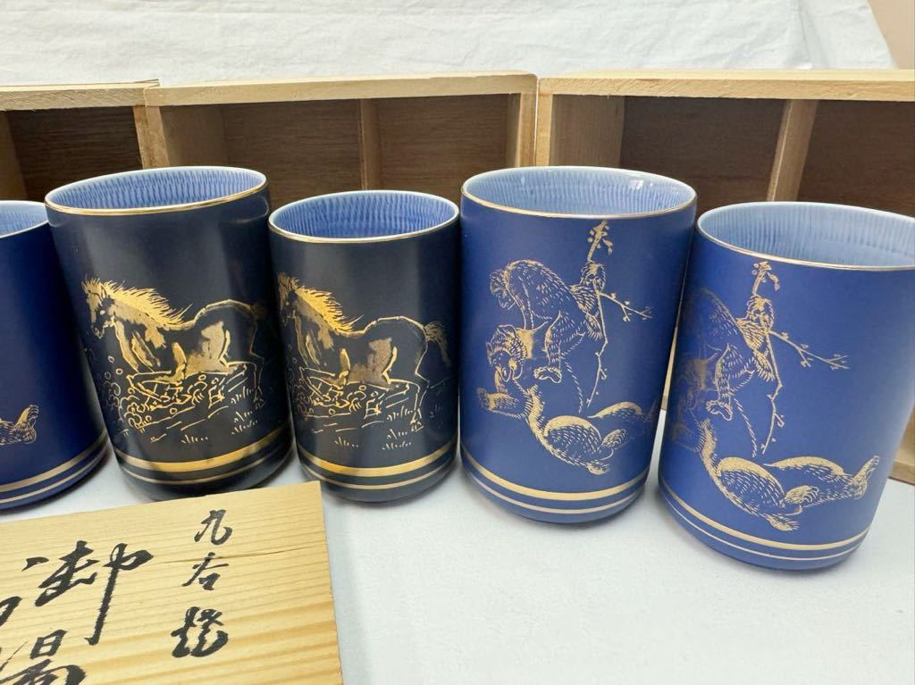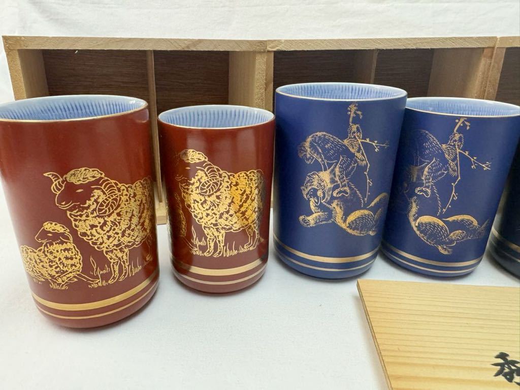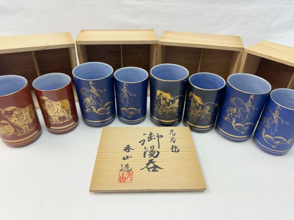 九谷焼・秀山窯。干支湯呑ペア×4セット。