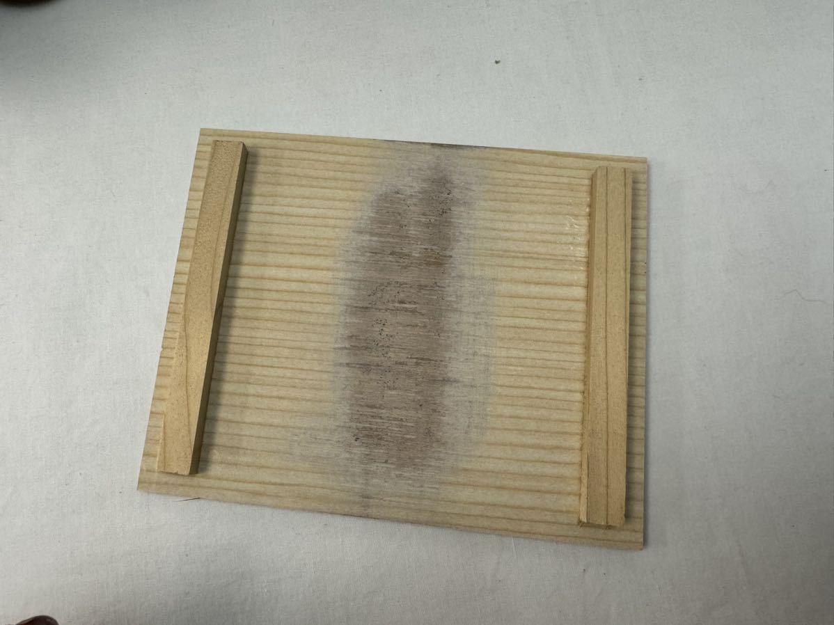 共箱蓋裏、銘が入っていたようで削り後あり。