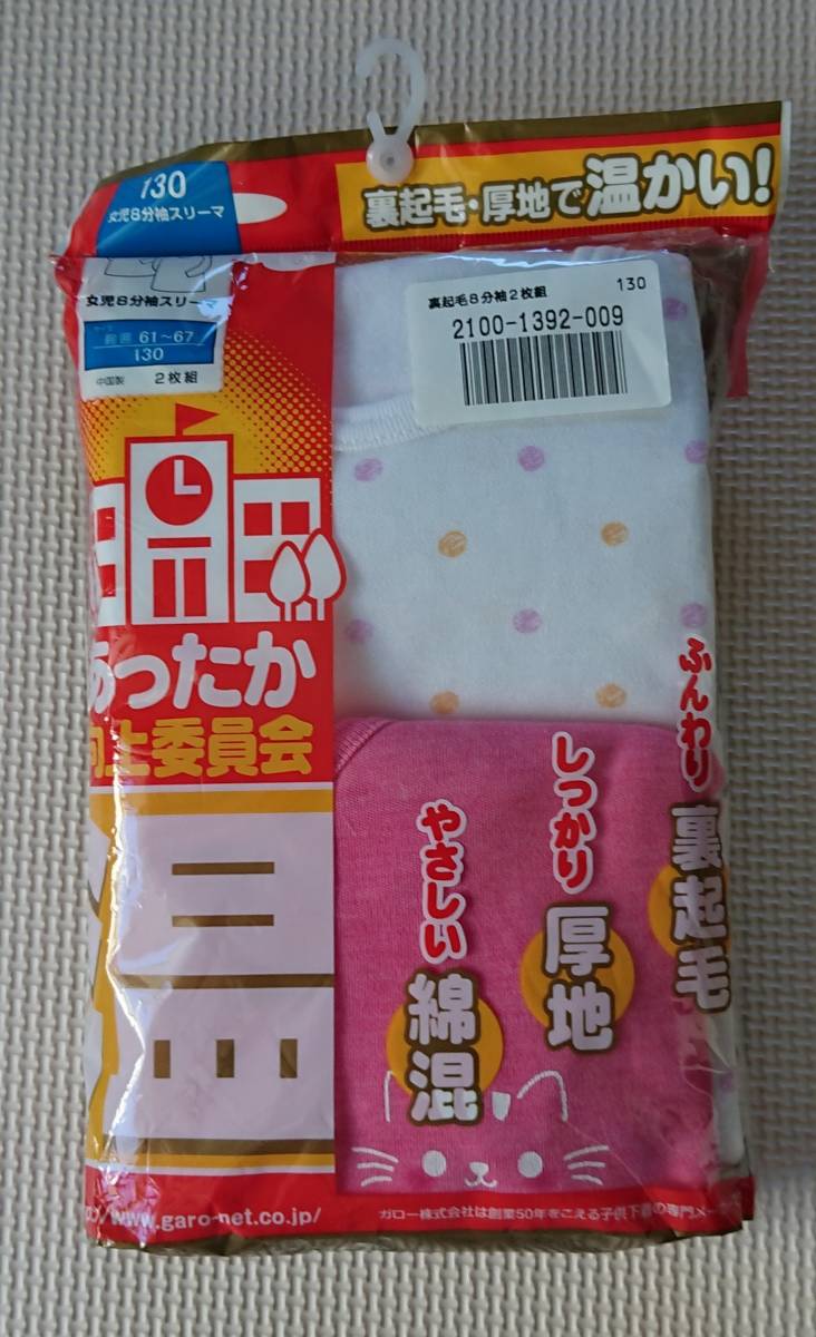 ★未使用★ Garau 女児 8分袖 スリーマ 130cm 2枚組 水玉/ねこ 長袖 裏起毛 厚地 綿混 ガロー